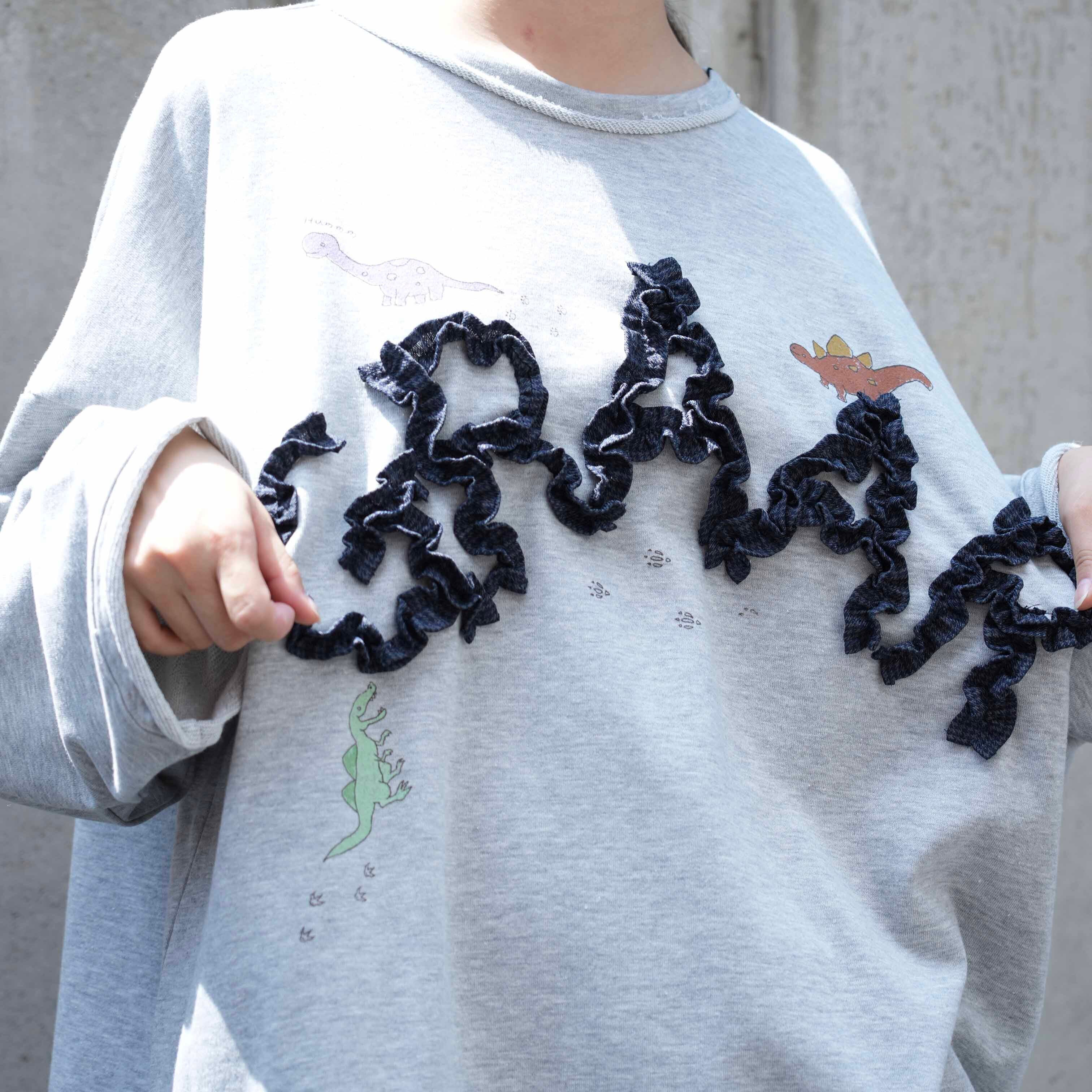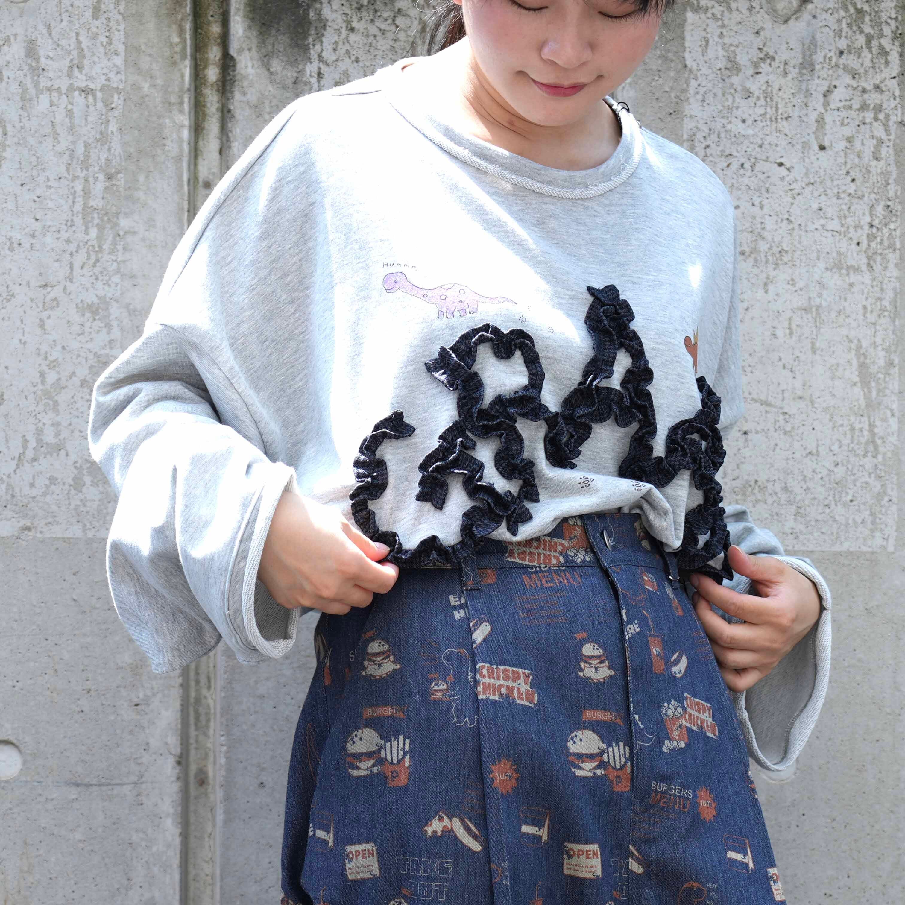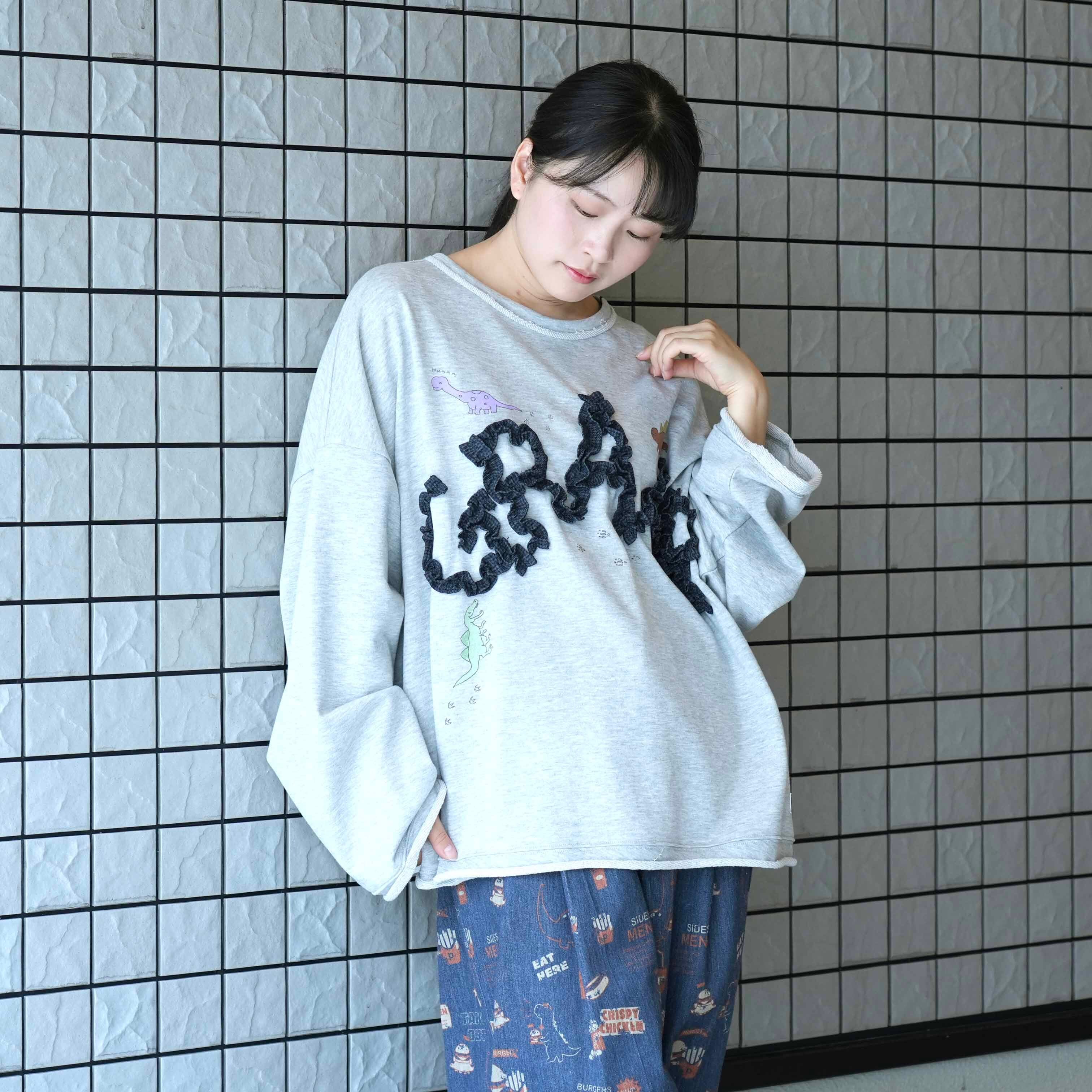 フリル文字刺繍+恐竜プリント スウェット(商品NO.490060)