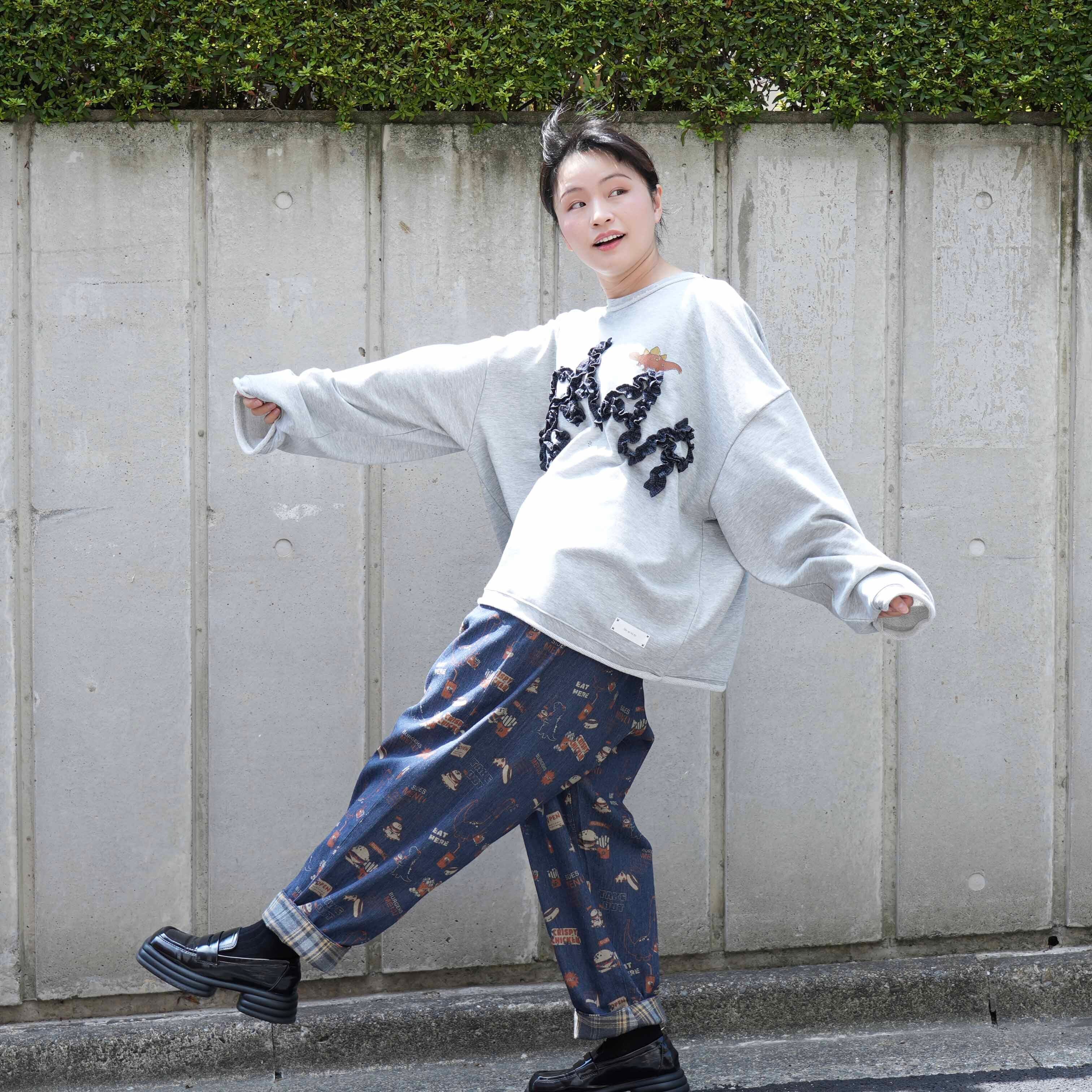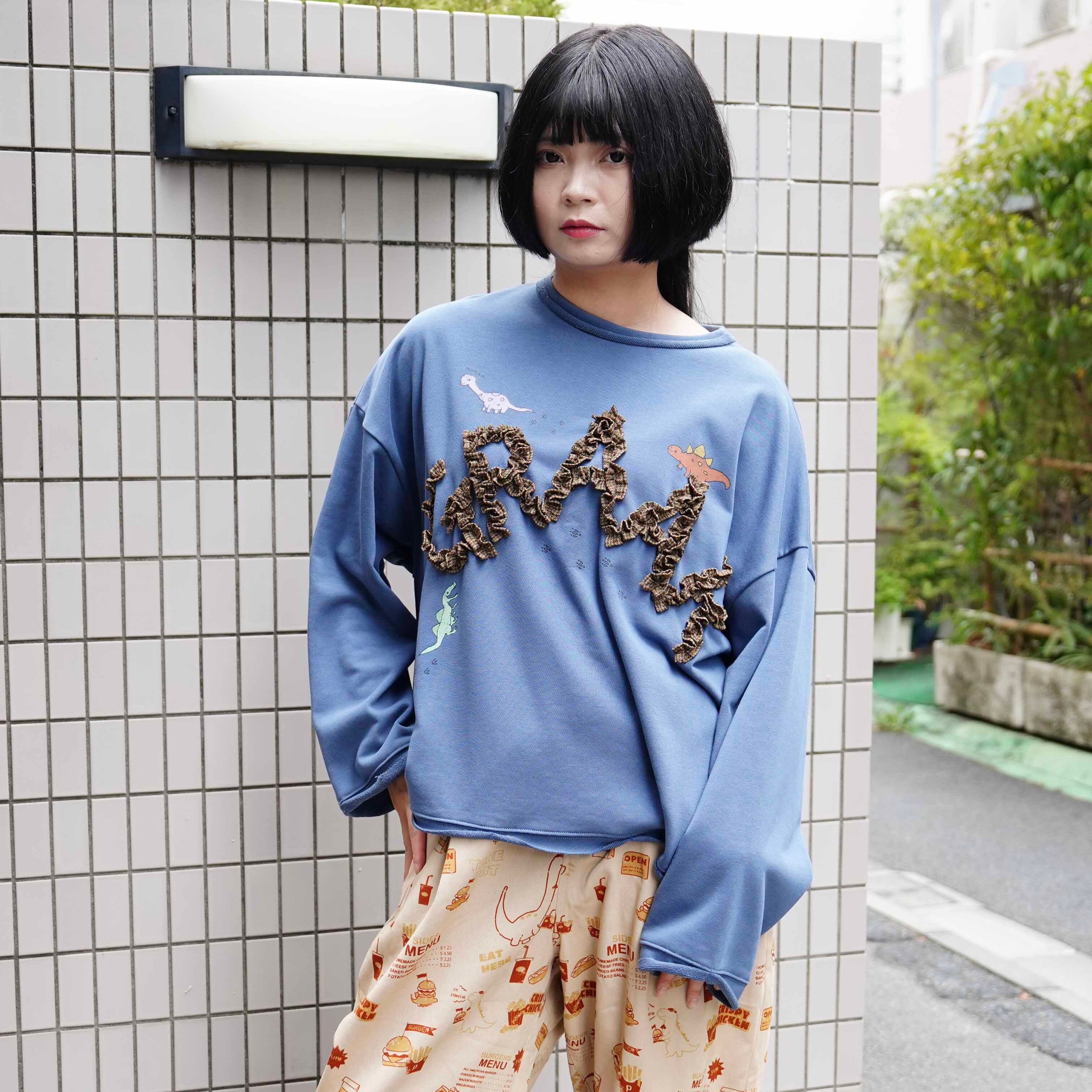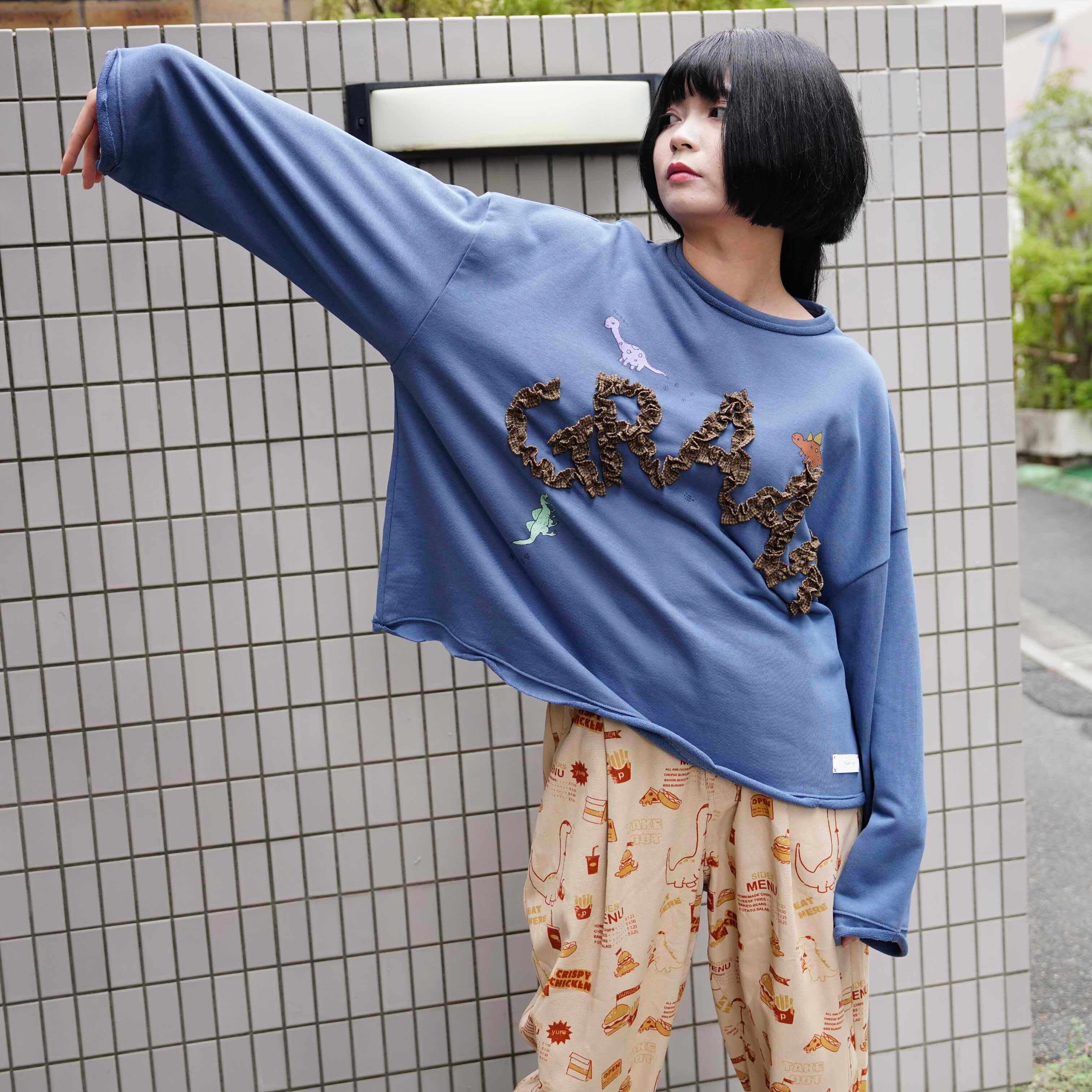 フリル文字刺繍+恐竜プリント スウェット(商品NO.490060)
