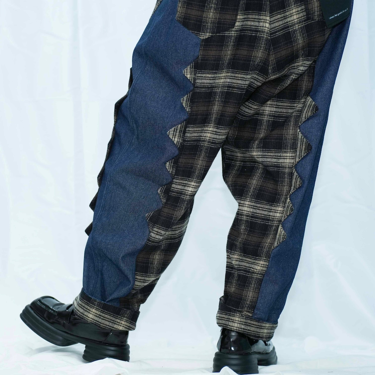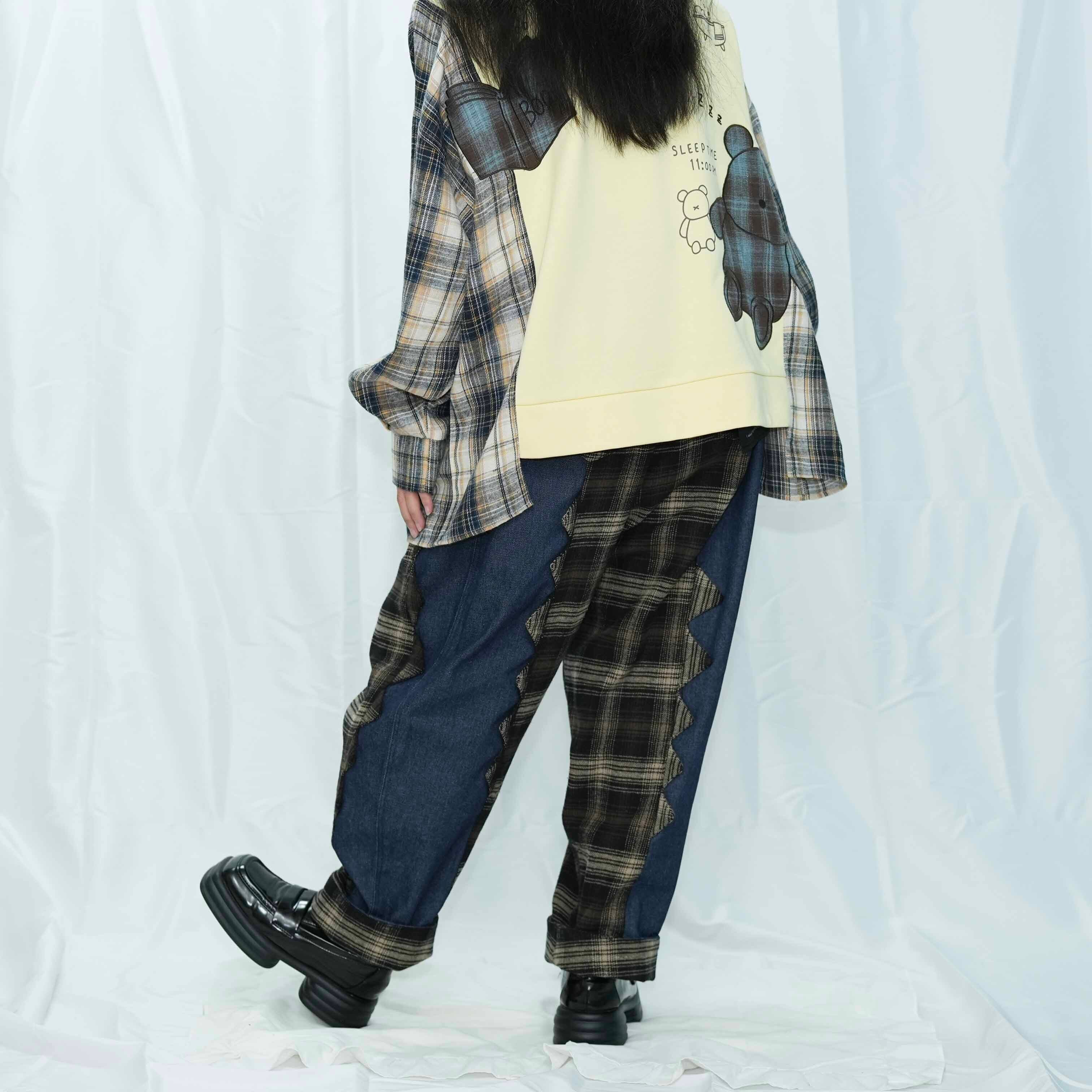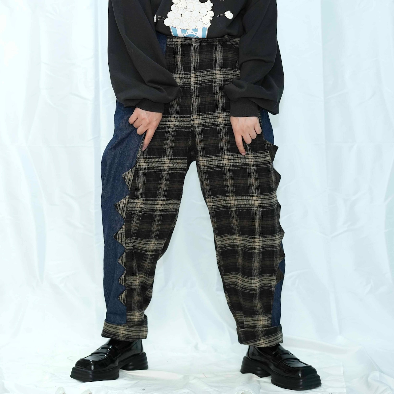 チェック×デニム 恐竜パンツ(商品NO.450076)