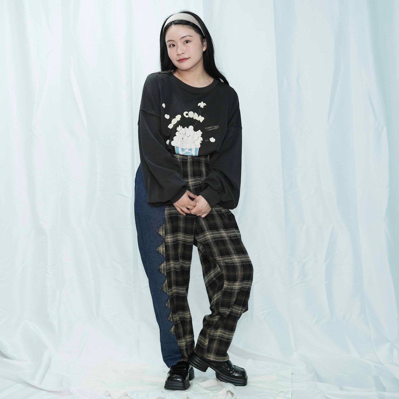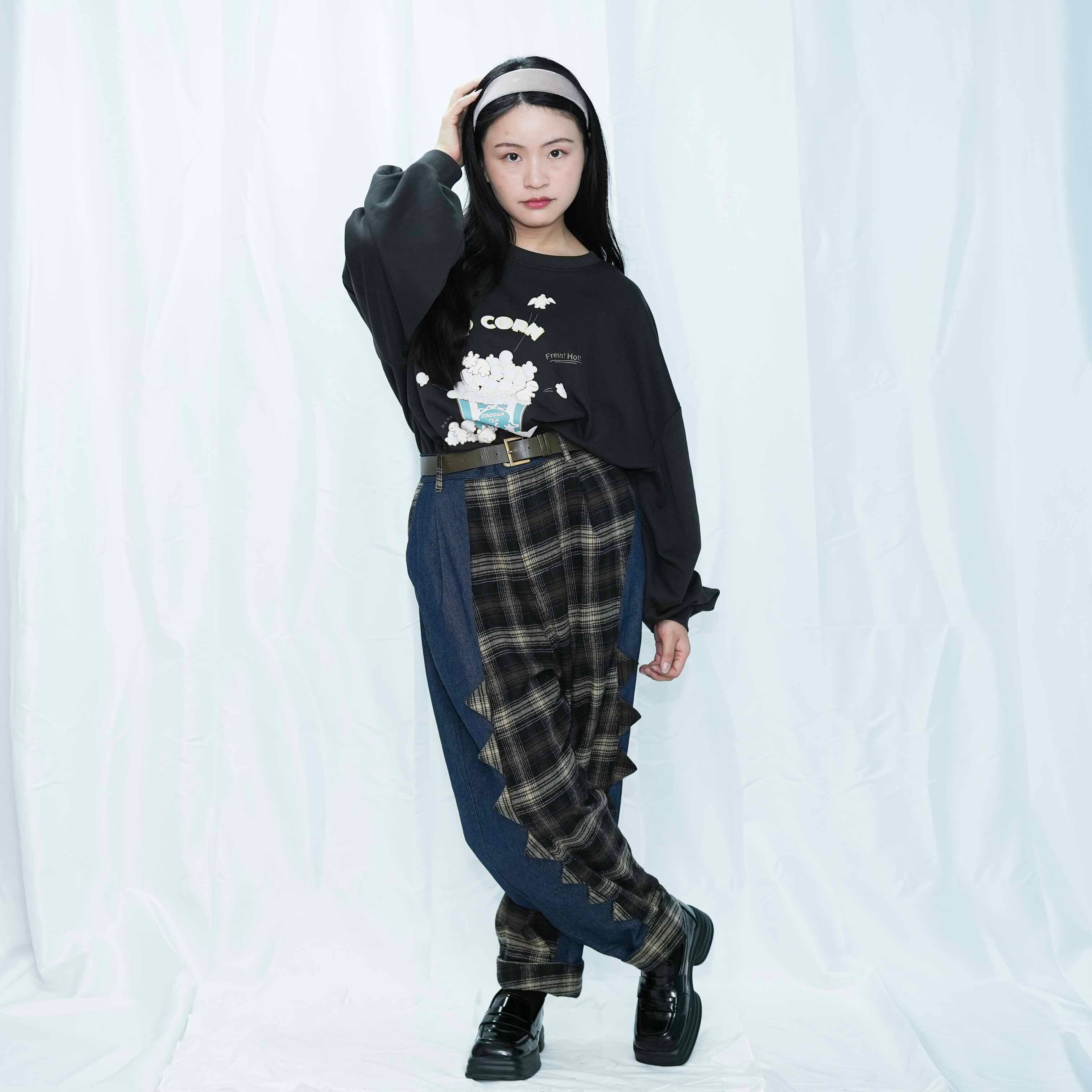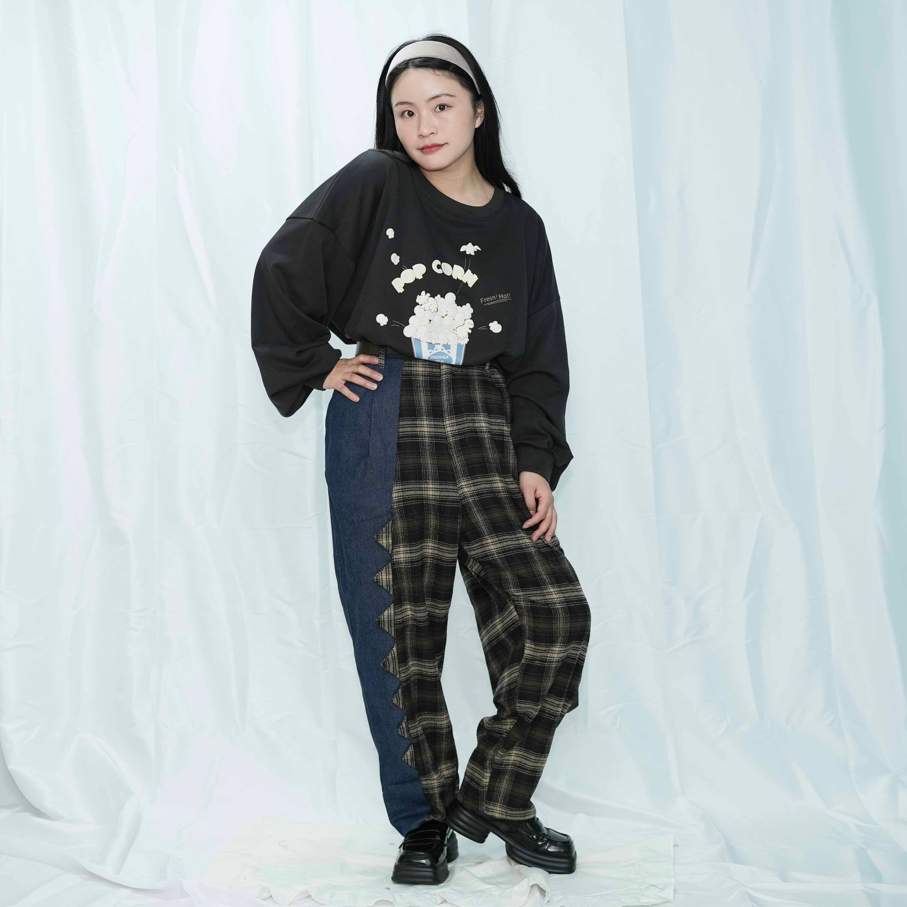 チェック×デニム 恐竜パンツ(商品NO.450076)
