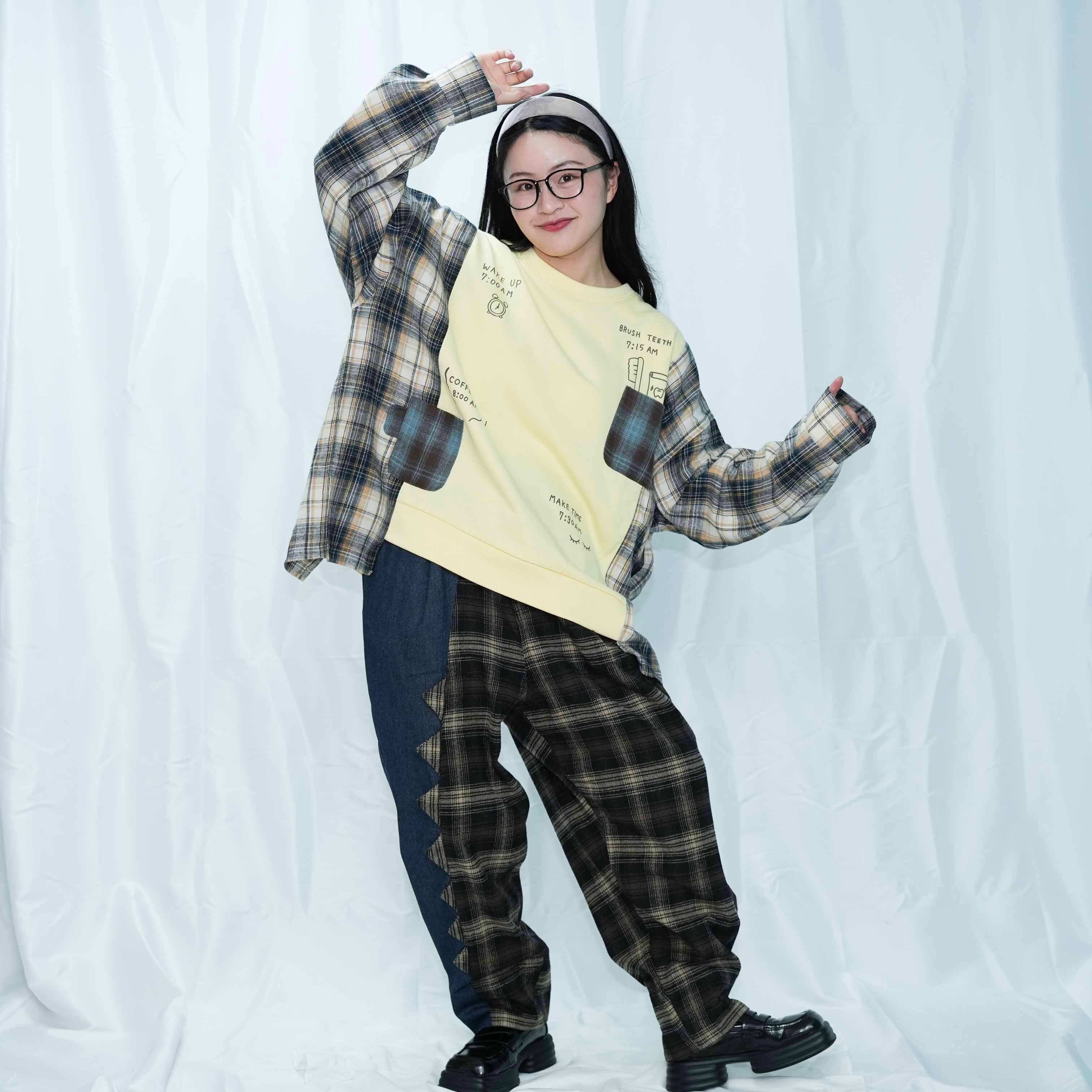 スウェット×チェック リメイク風プルオーバー(商品nO.490063)