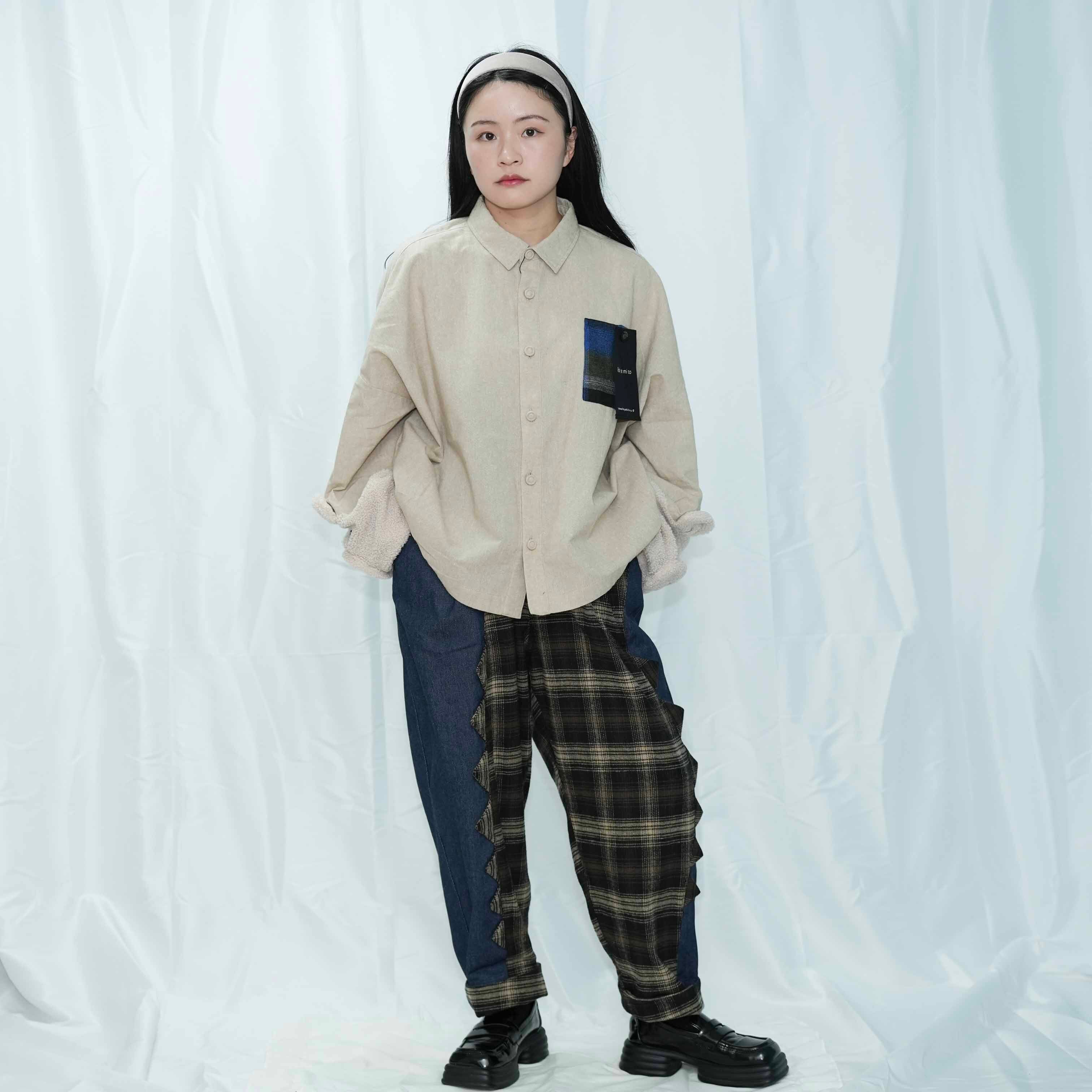 袖口がくまの顔になった表面が起毛素材の可愛いシャツです。