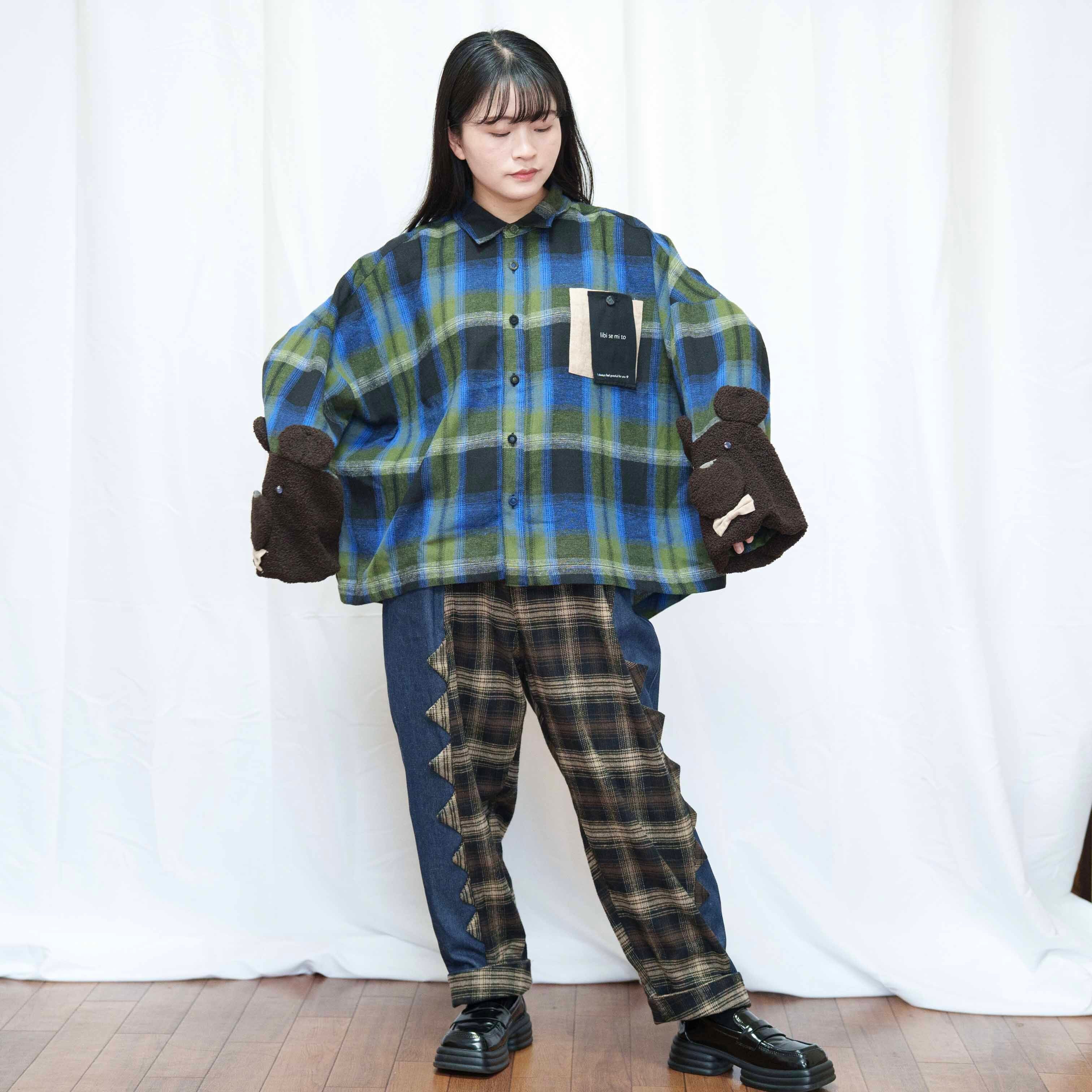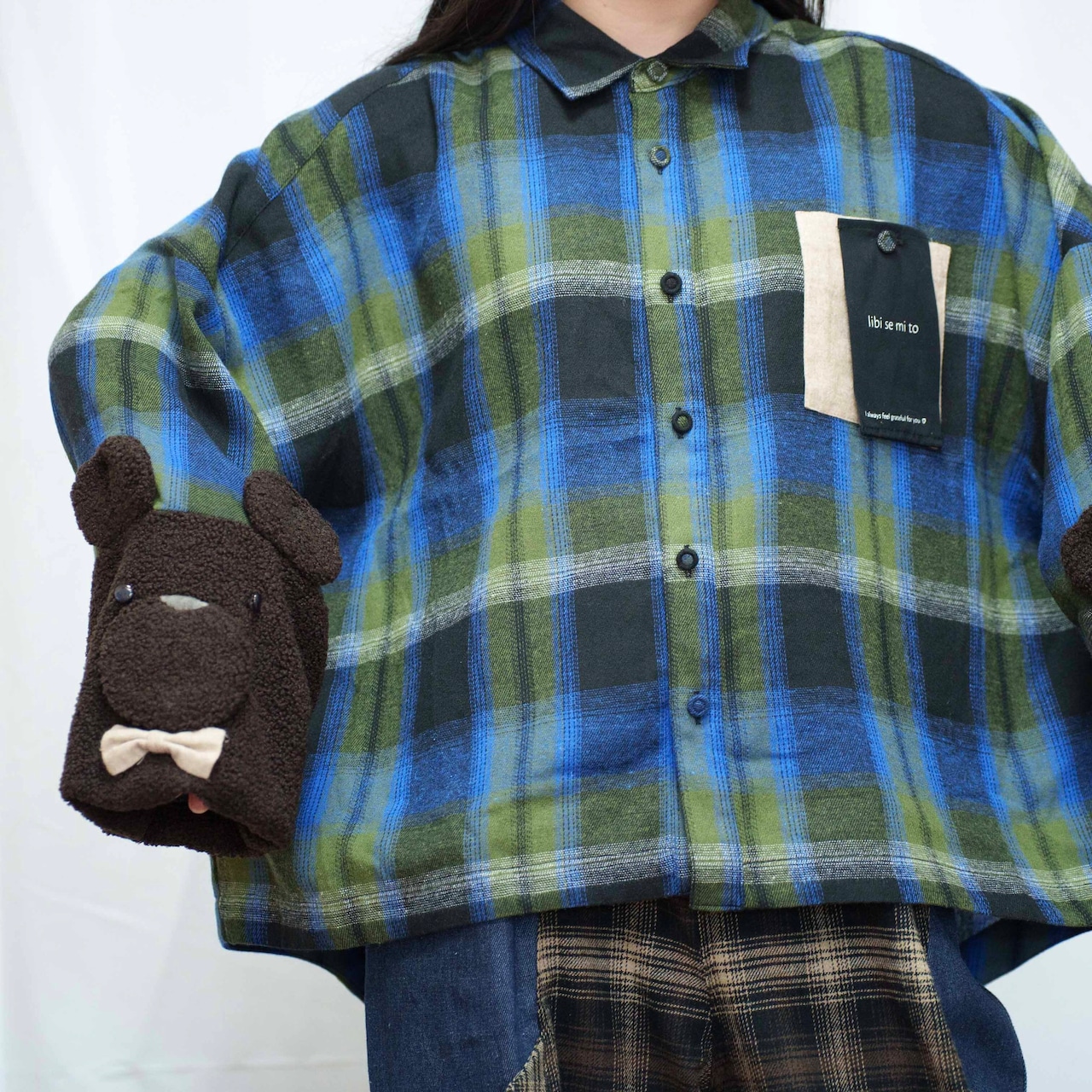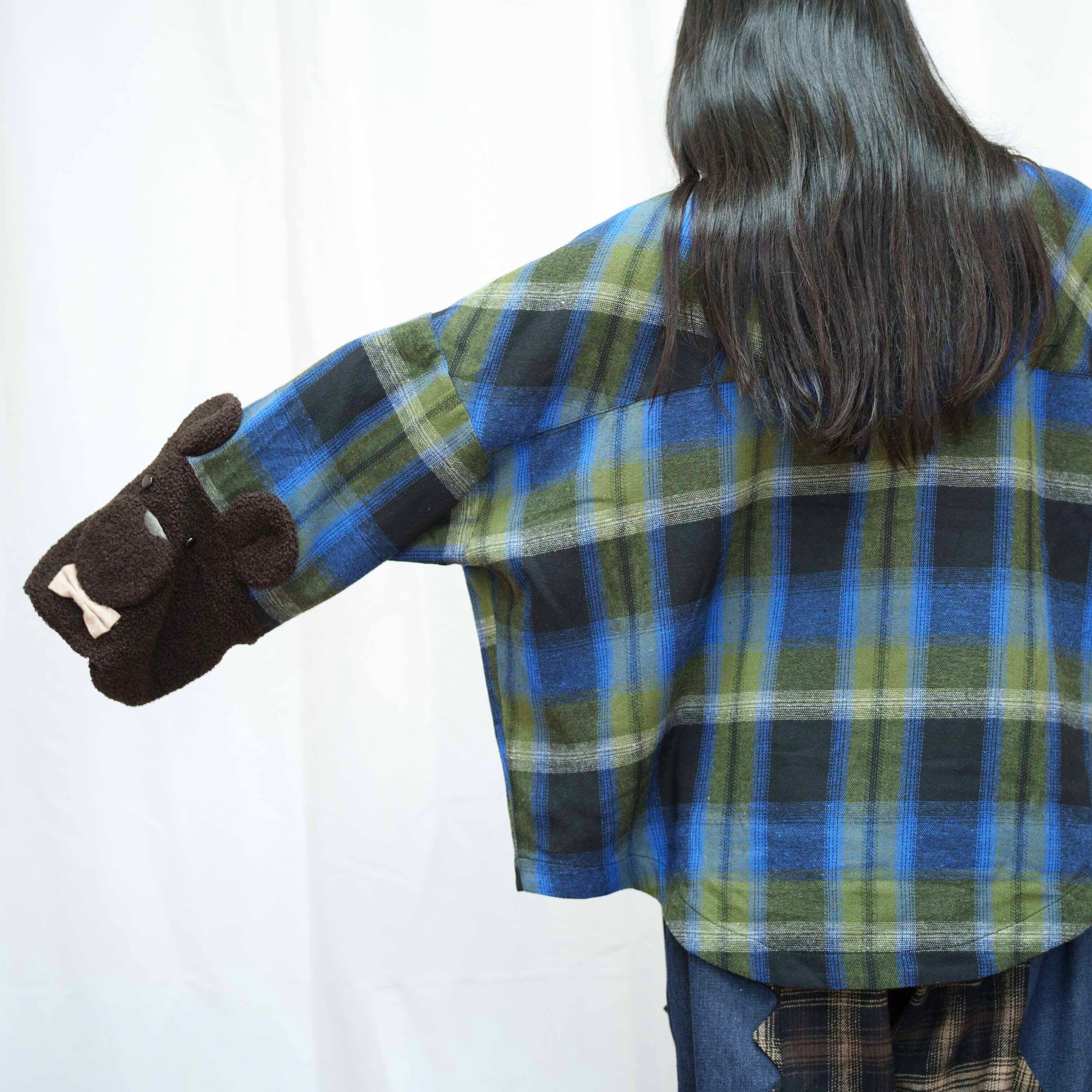 くまの顔の袖 チェックシャツ(商品NO.450064)