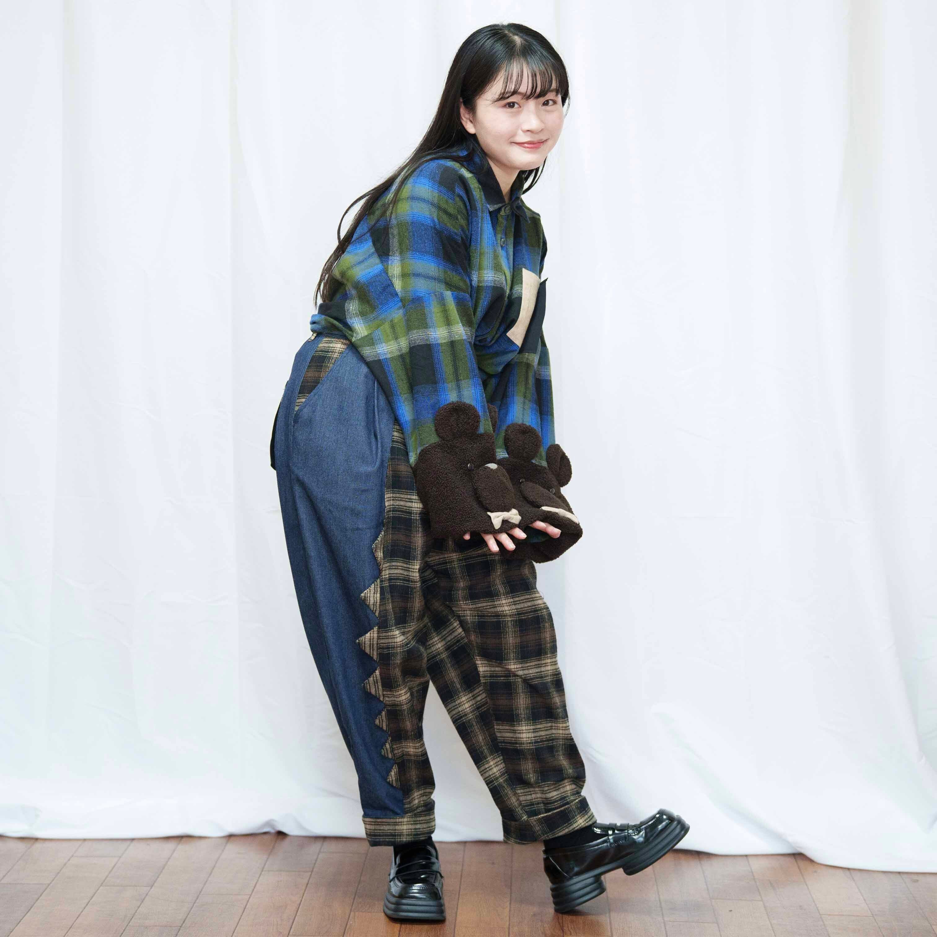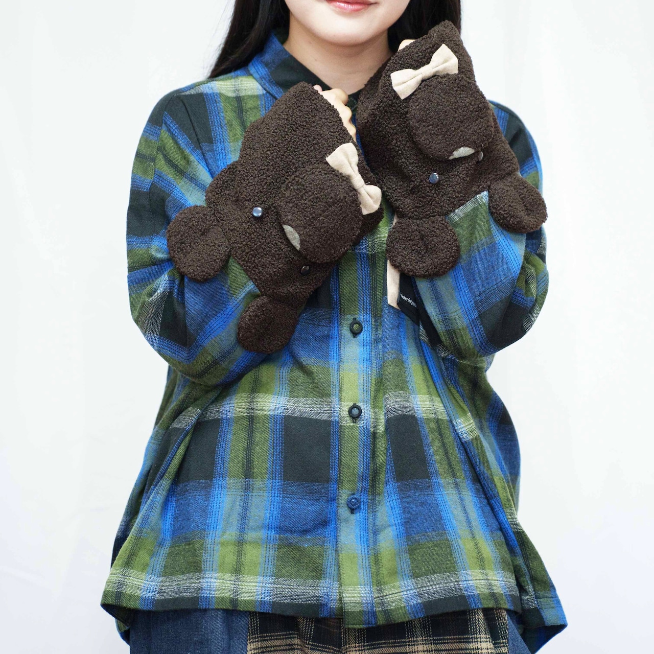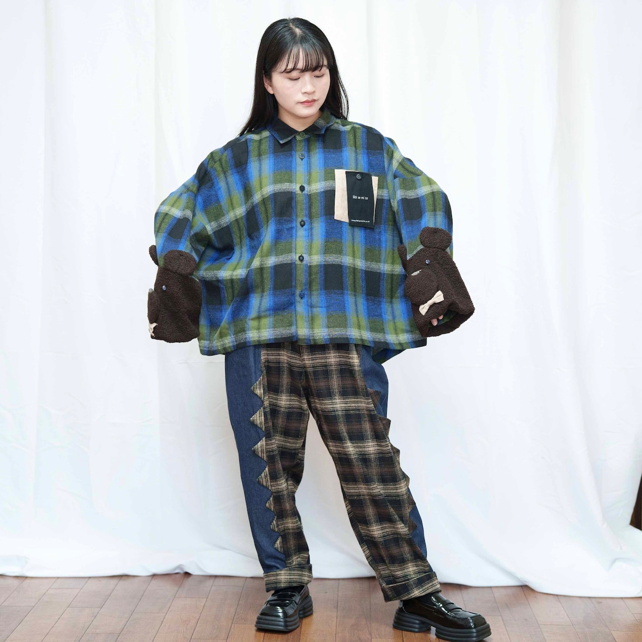 くまの顔の袖 チェックシャツ(商品NO.450064)