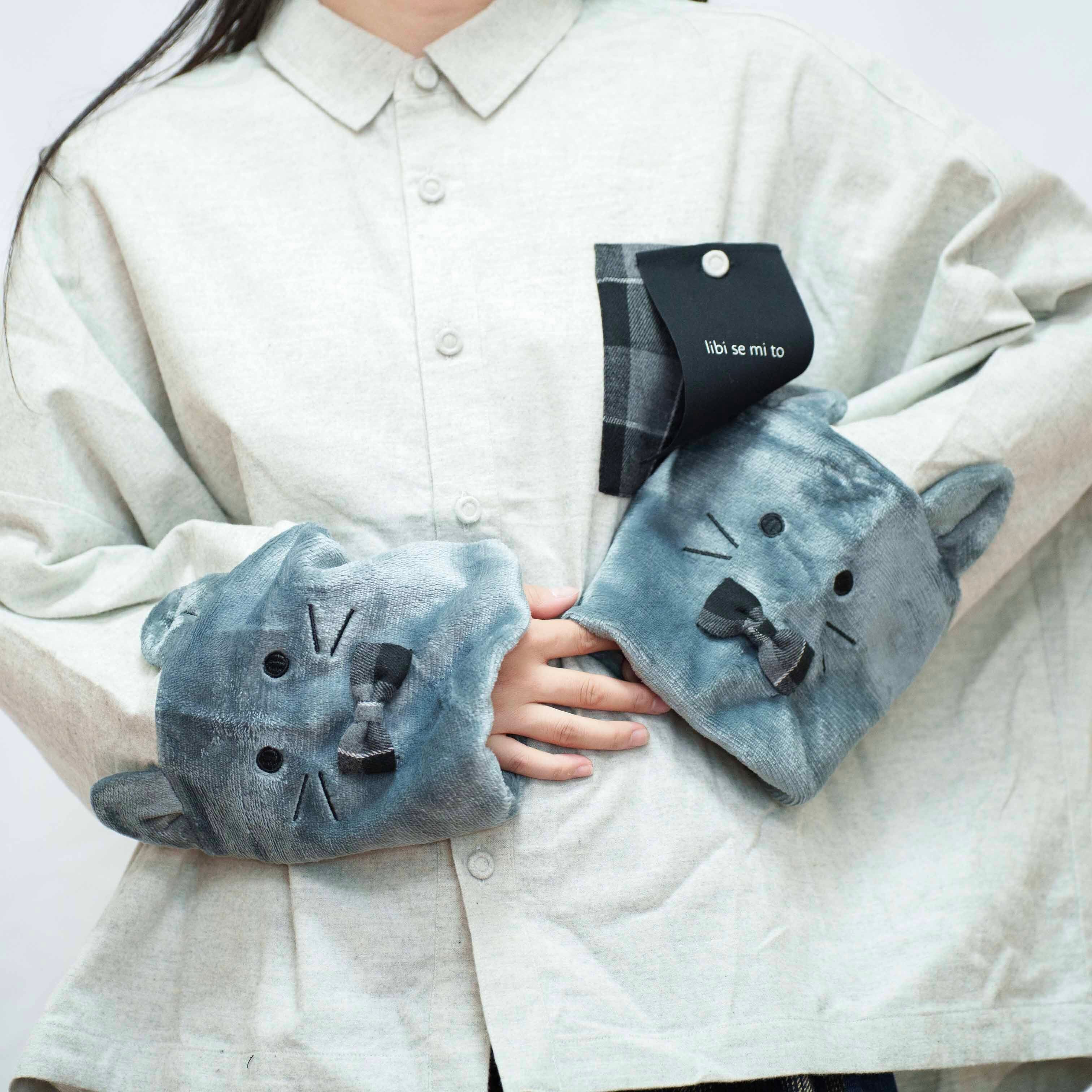 袖口がねこの顔になった表面が起毛素材の可愛いシャツです。