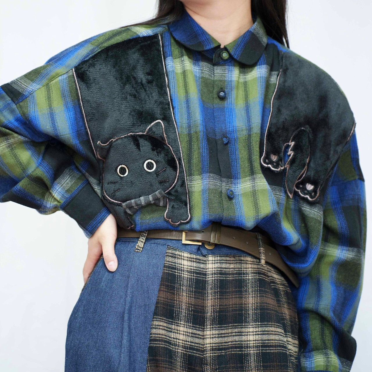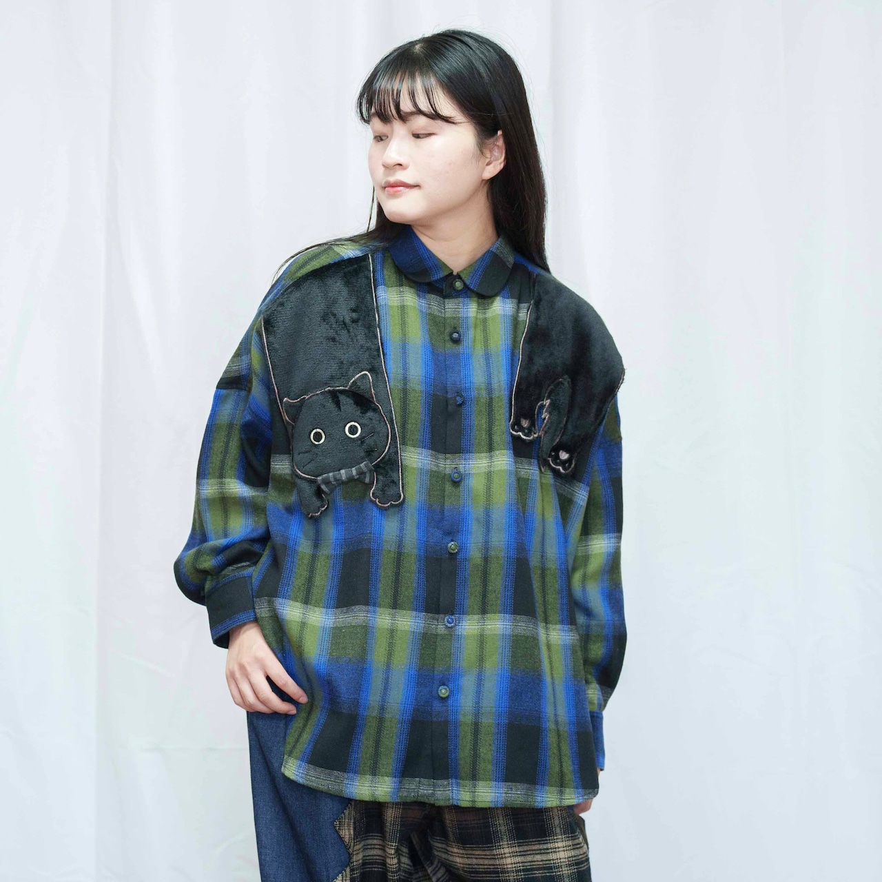 ねこぶら下がりモチーフ チェックシャツ(商品NO.450068)