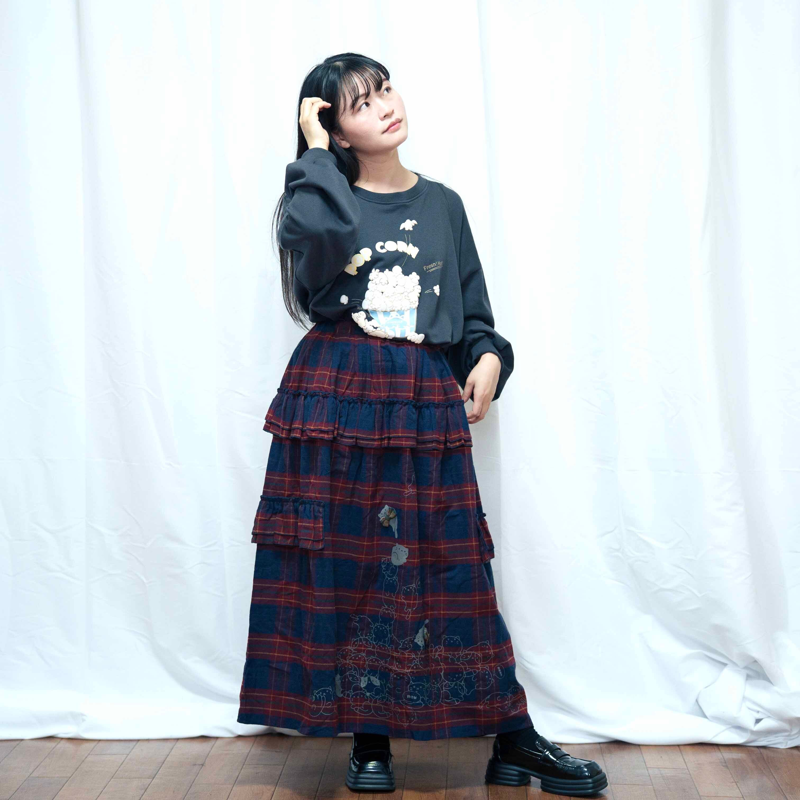 ねこいっぱいプリント フリルスカート(商品NO.450071)