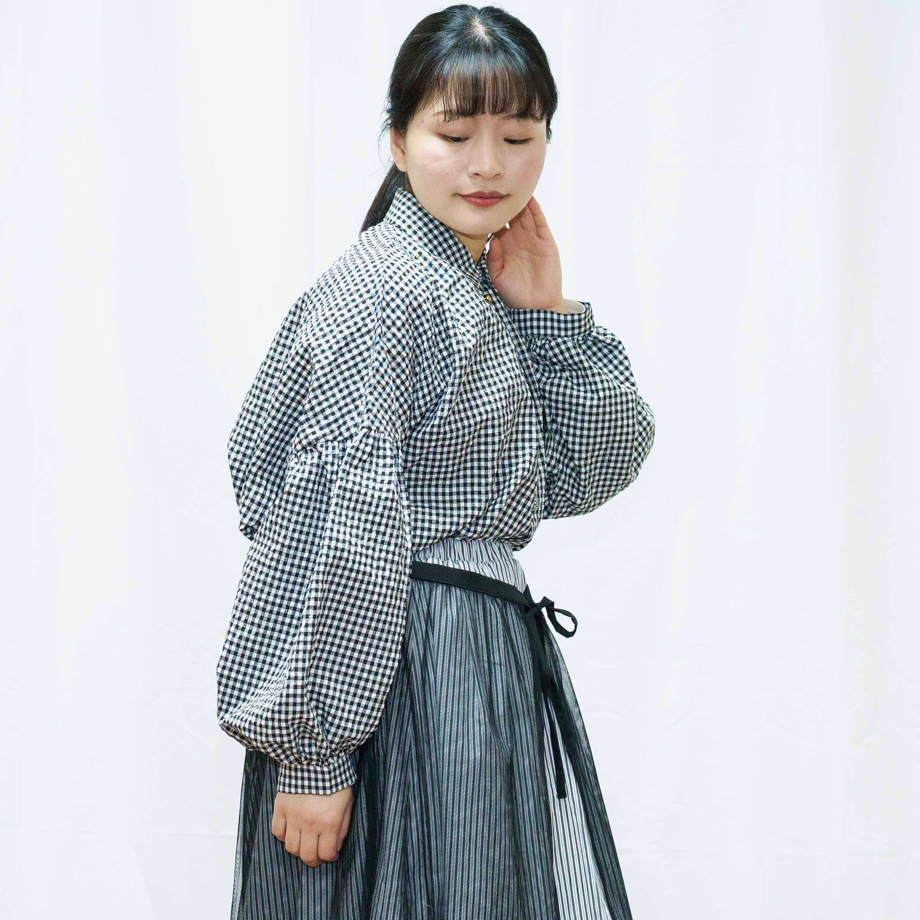 ふんわりギンガム生地のブラウスです。