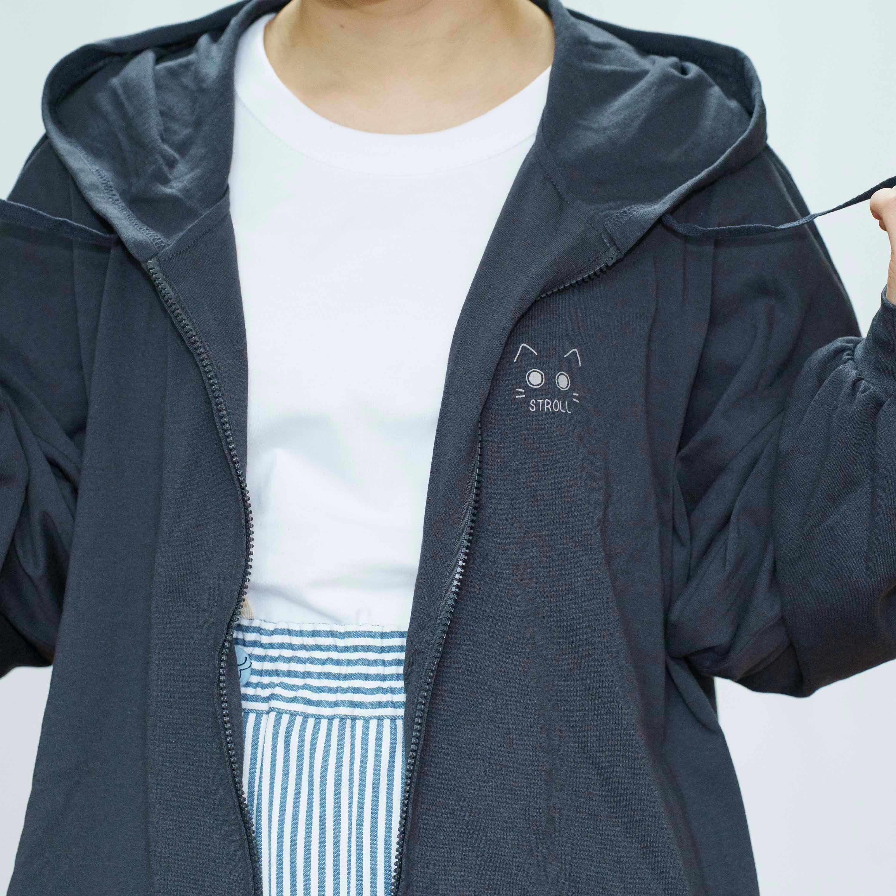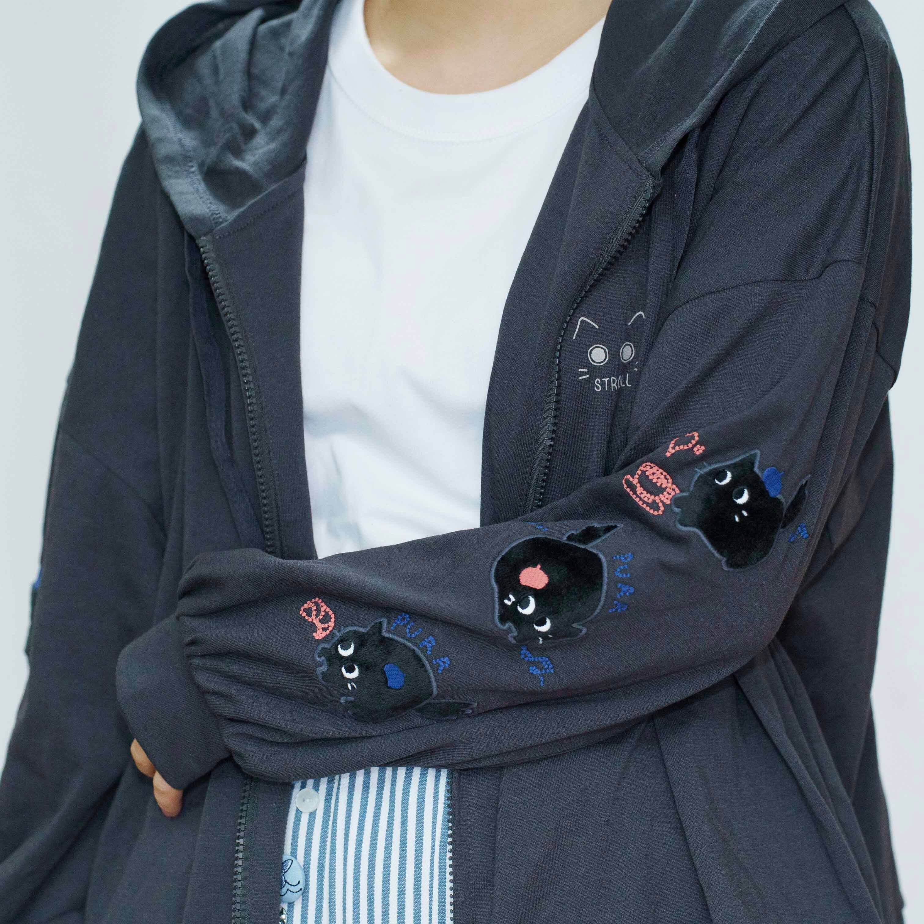 袖の3匹の猫ちゃん刺繍が可愛いパーカーです。