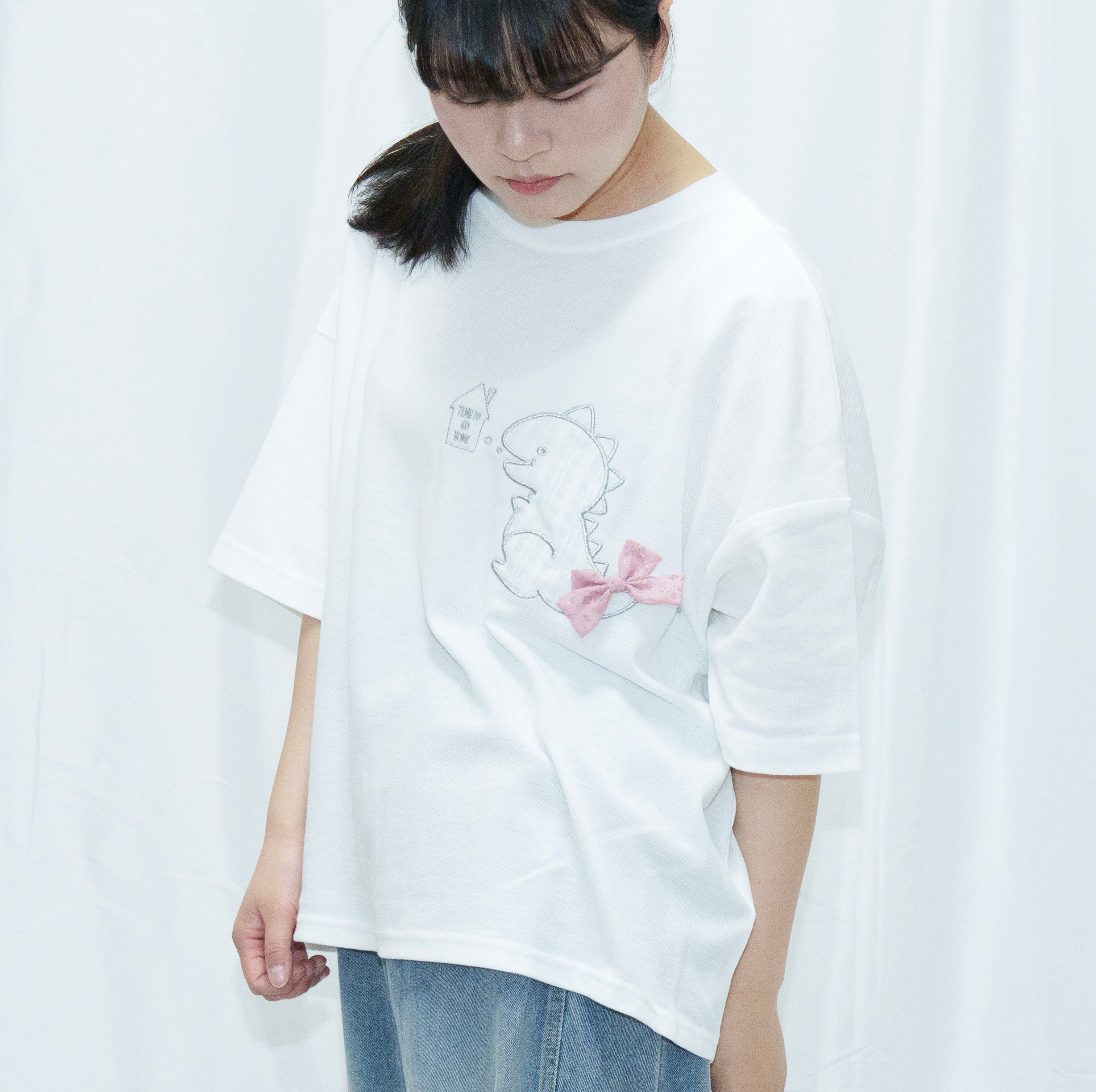 きょうりゅうとリボンモチーフ 鹿子Tシャツ(商品NO.490180)