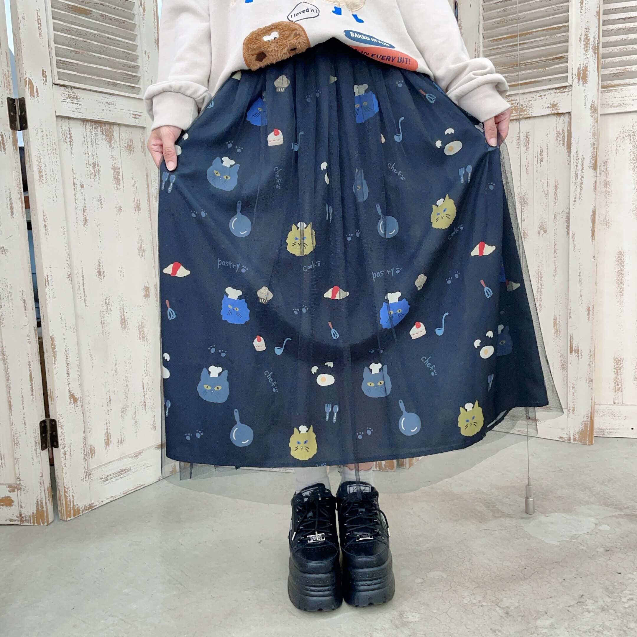 ねこシェフ総柄×チュール スカート(商品NO.450024)