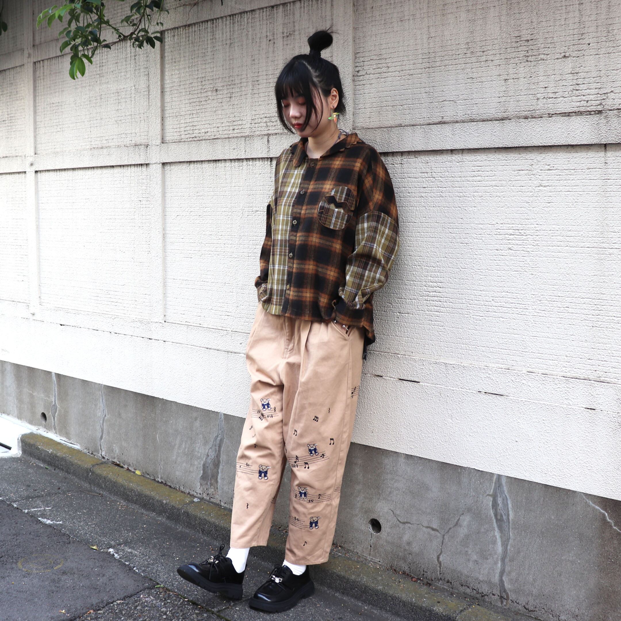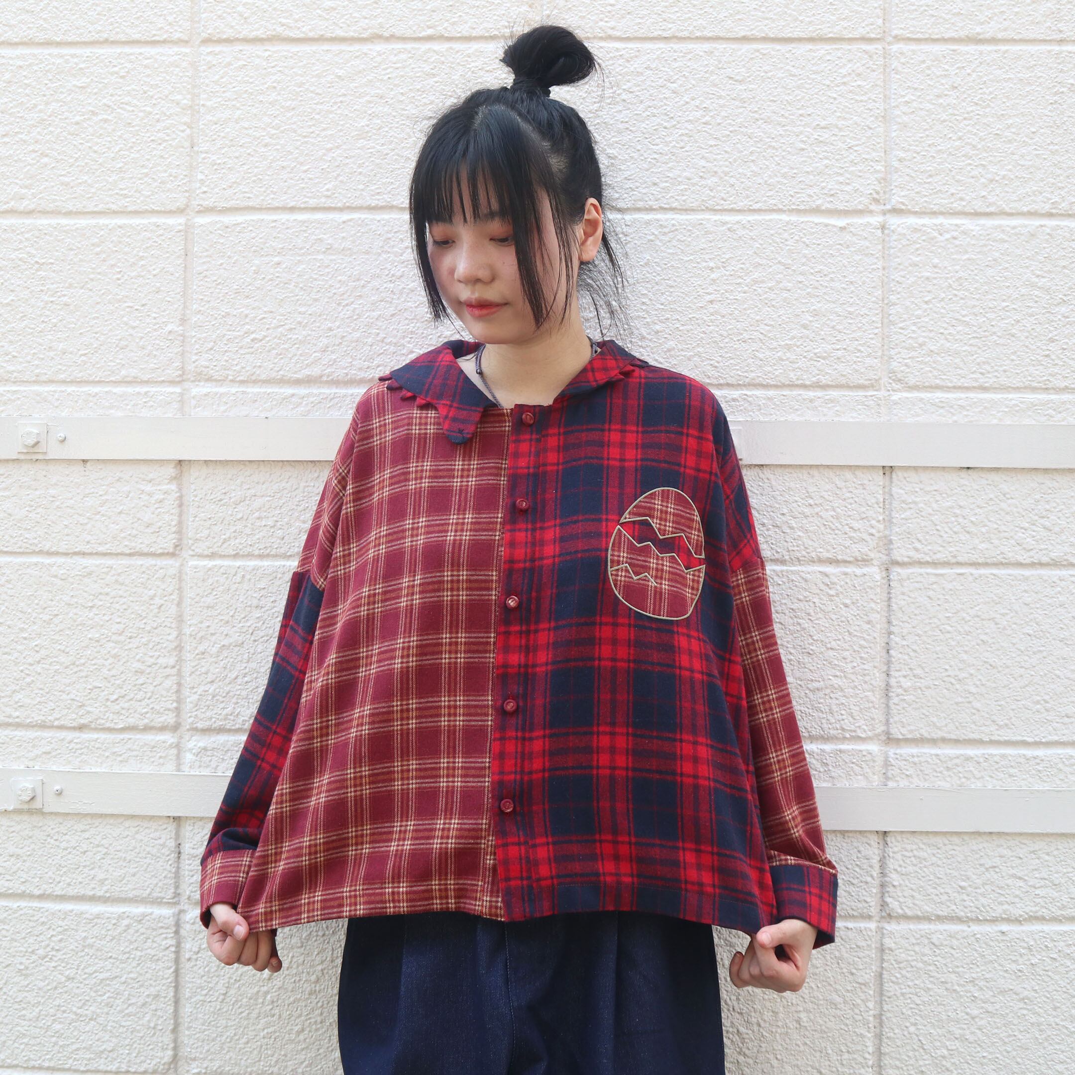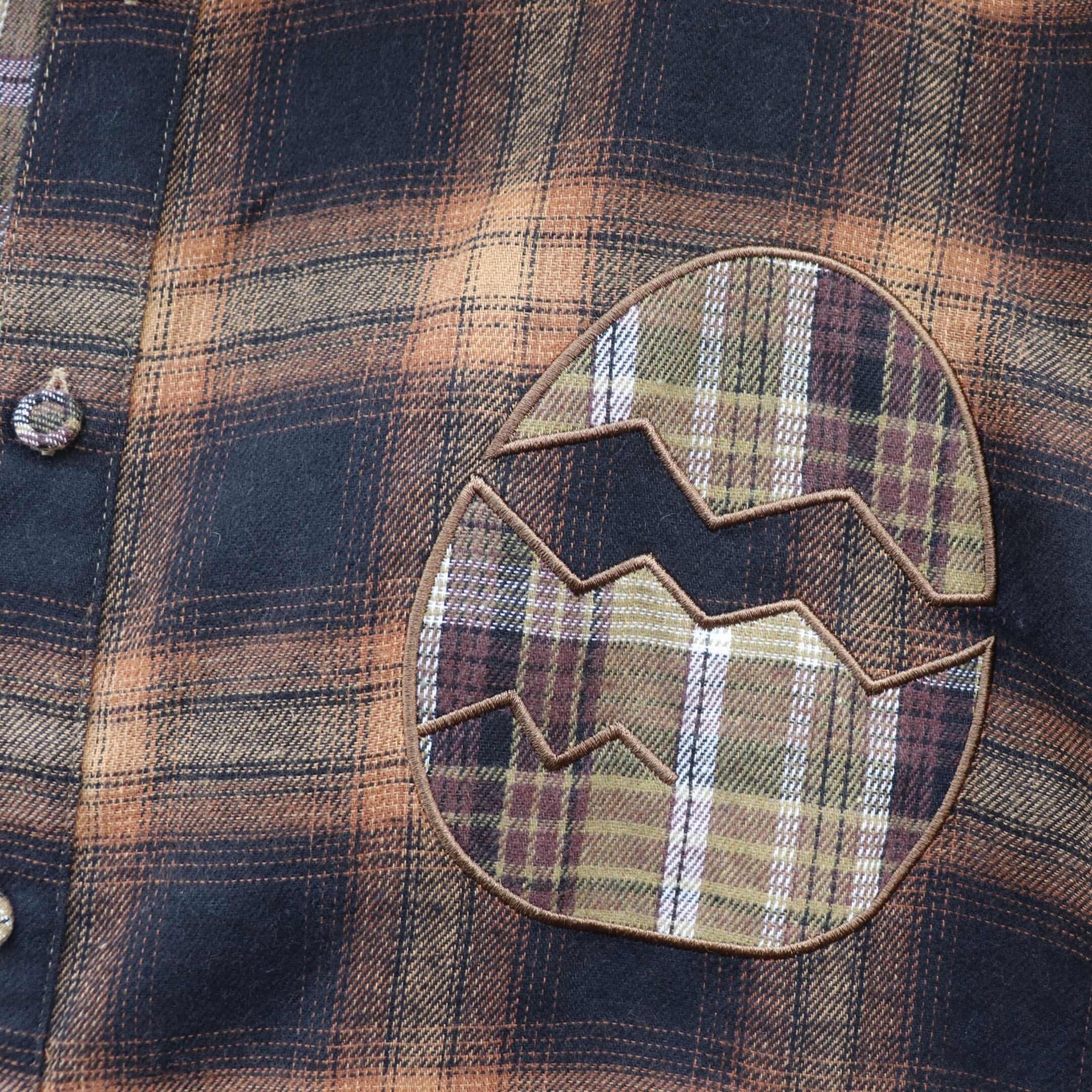 衿の恐竜モチーフとポケット刺繍、背中のギザギザ背ビレがポイントです。