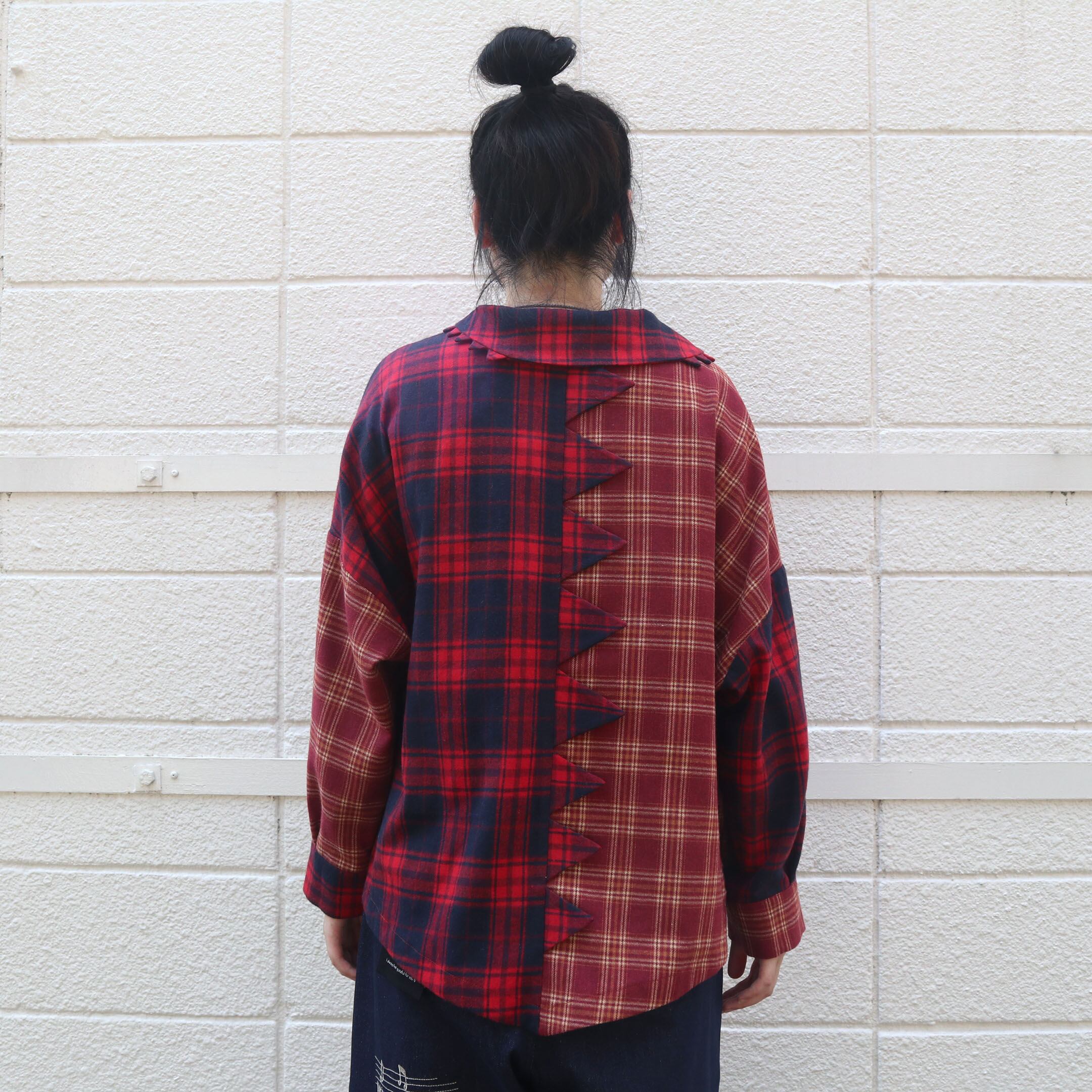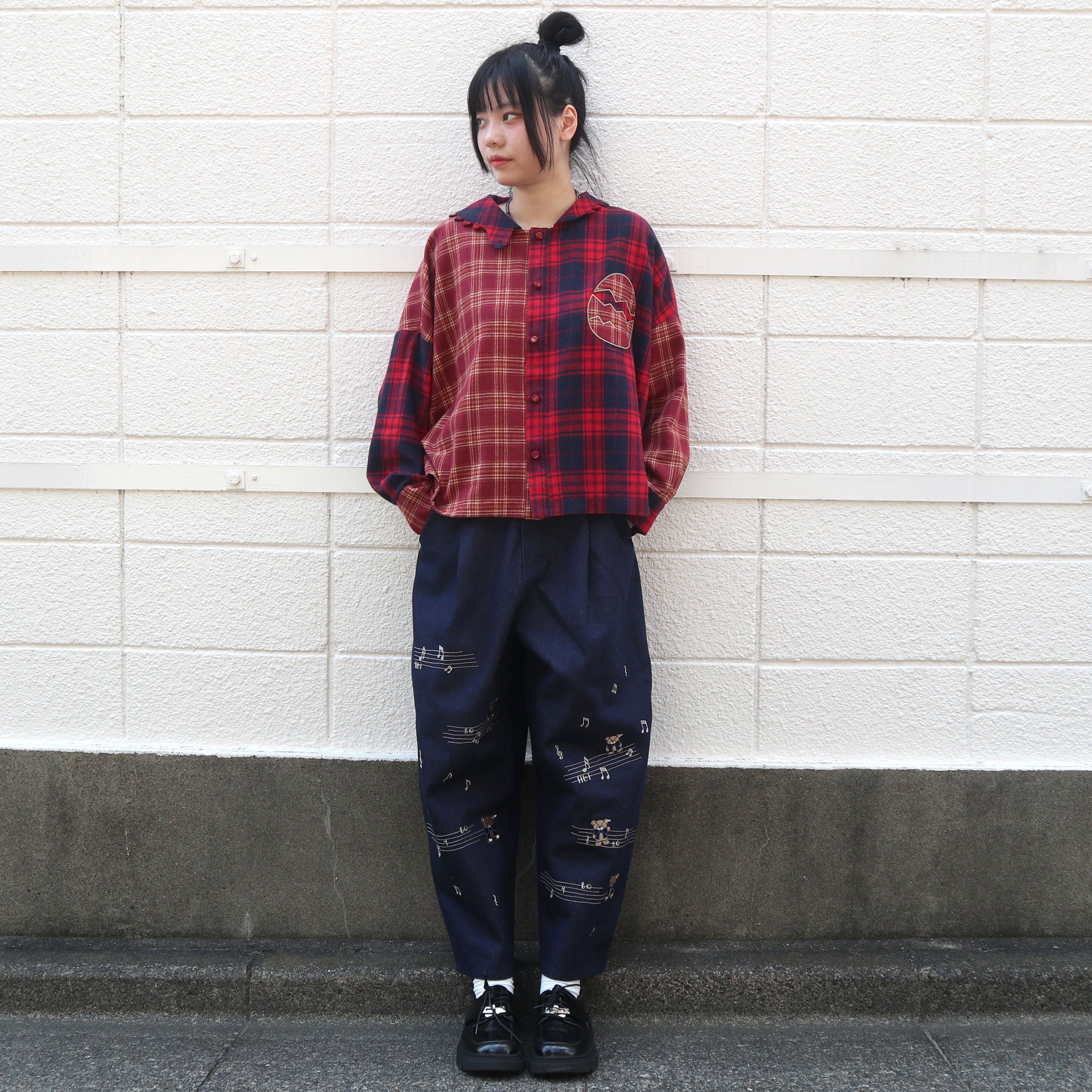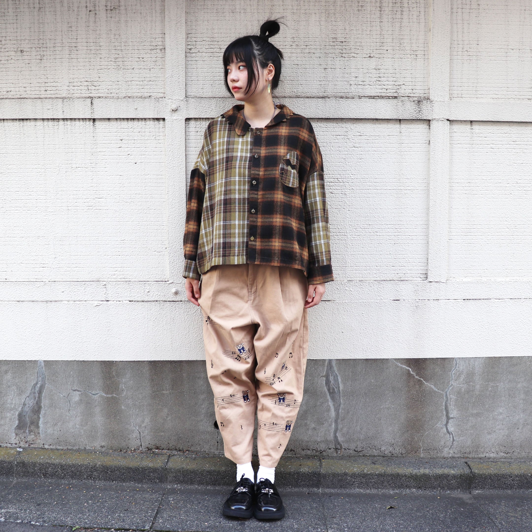 衿の恐竜モチーフとポケット刺繍、背中のギザギザ背ビレがポイントです。
