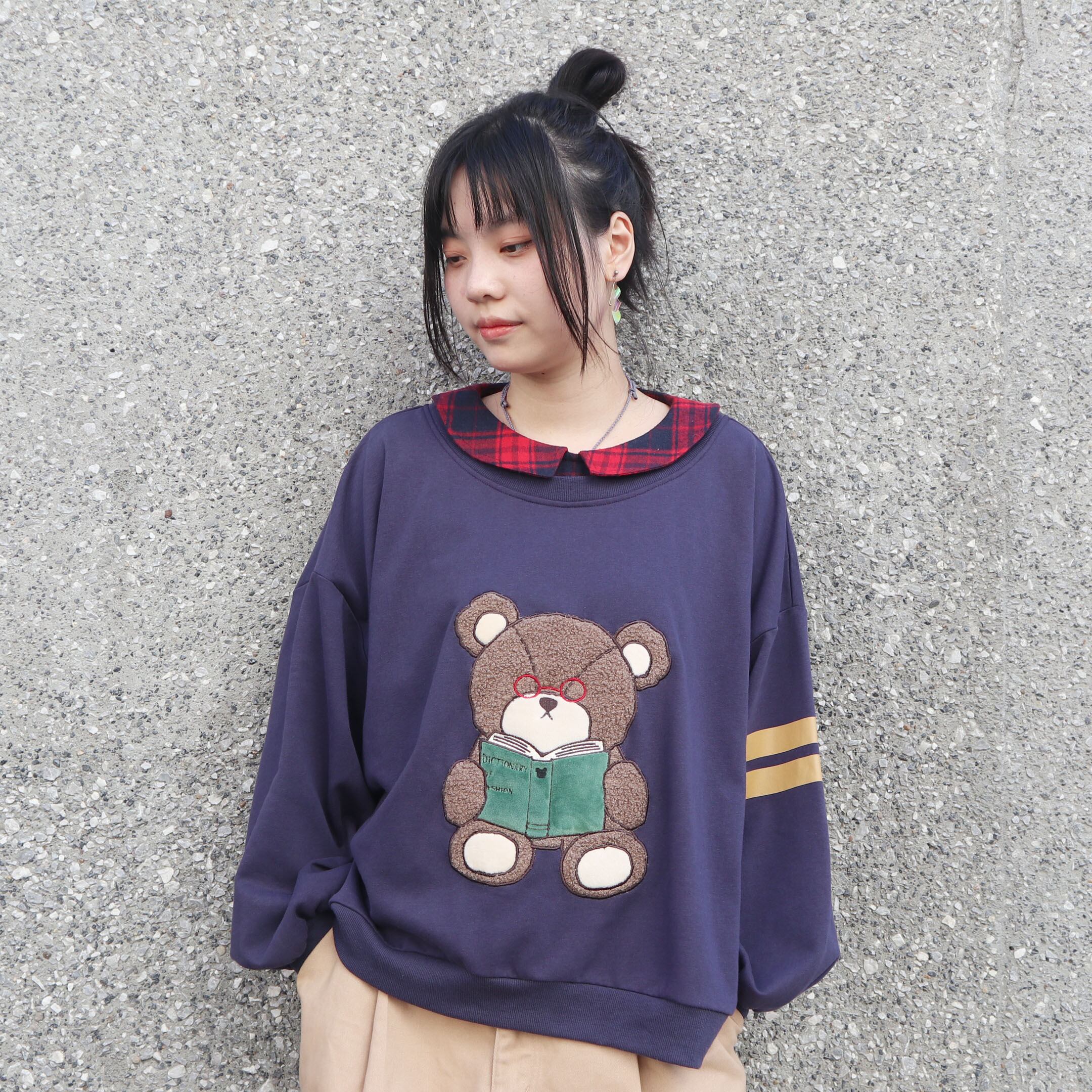 くまパッチ重ね着風スウェット(商品NO.490003)
