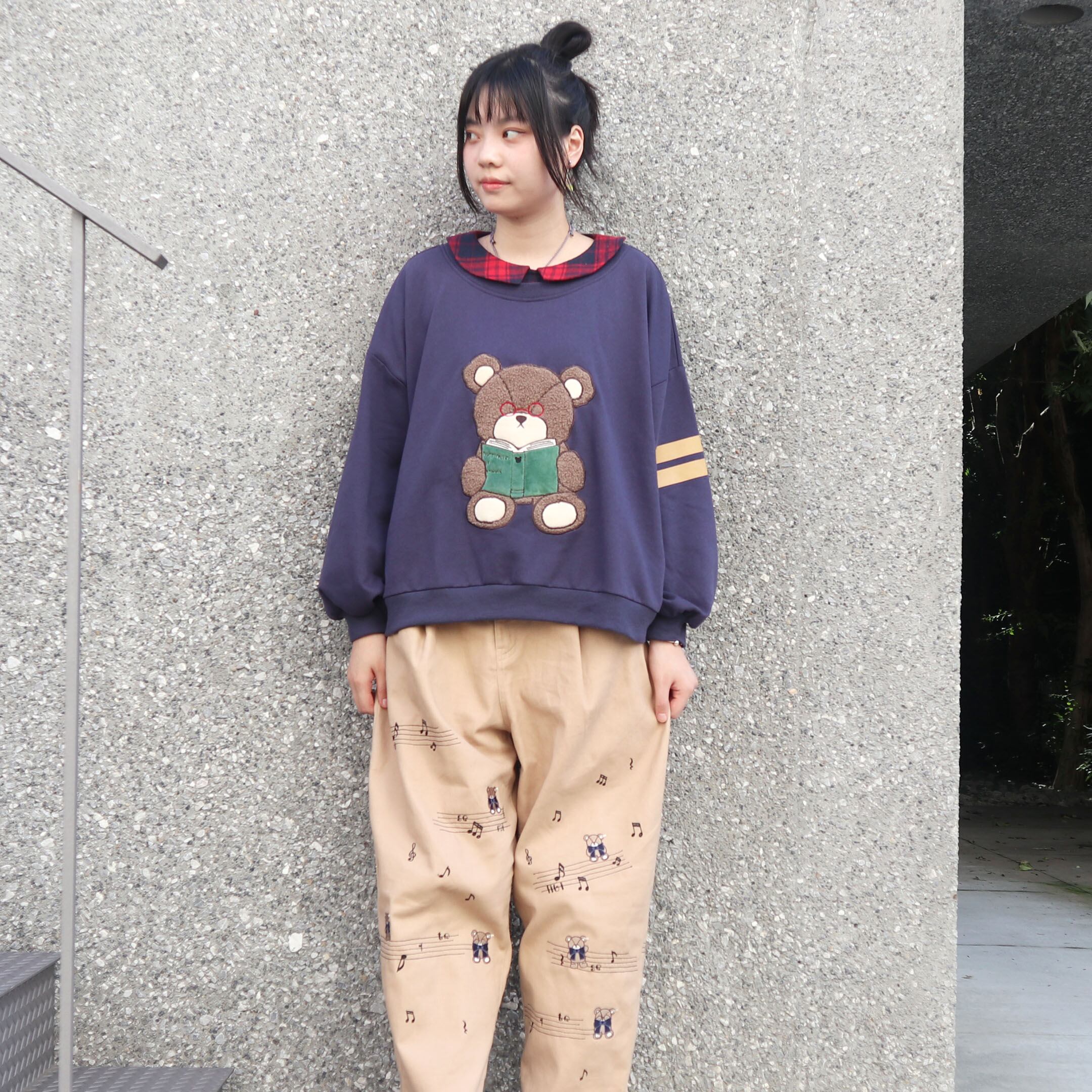大きなボアのくまのパッチ刺繍と袖のラインがポイントです。