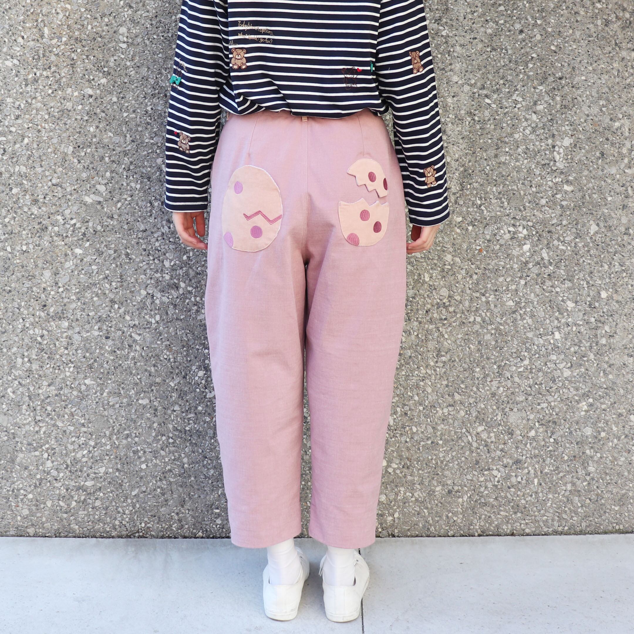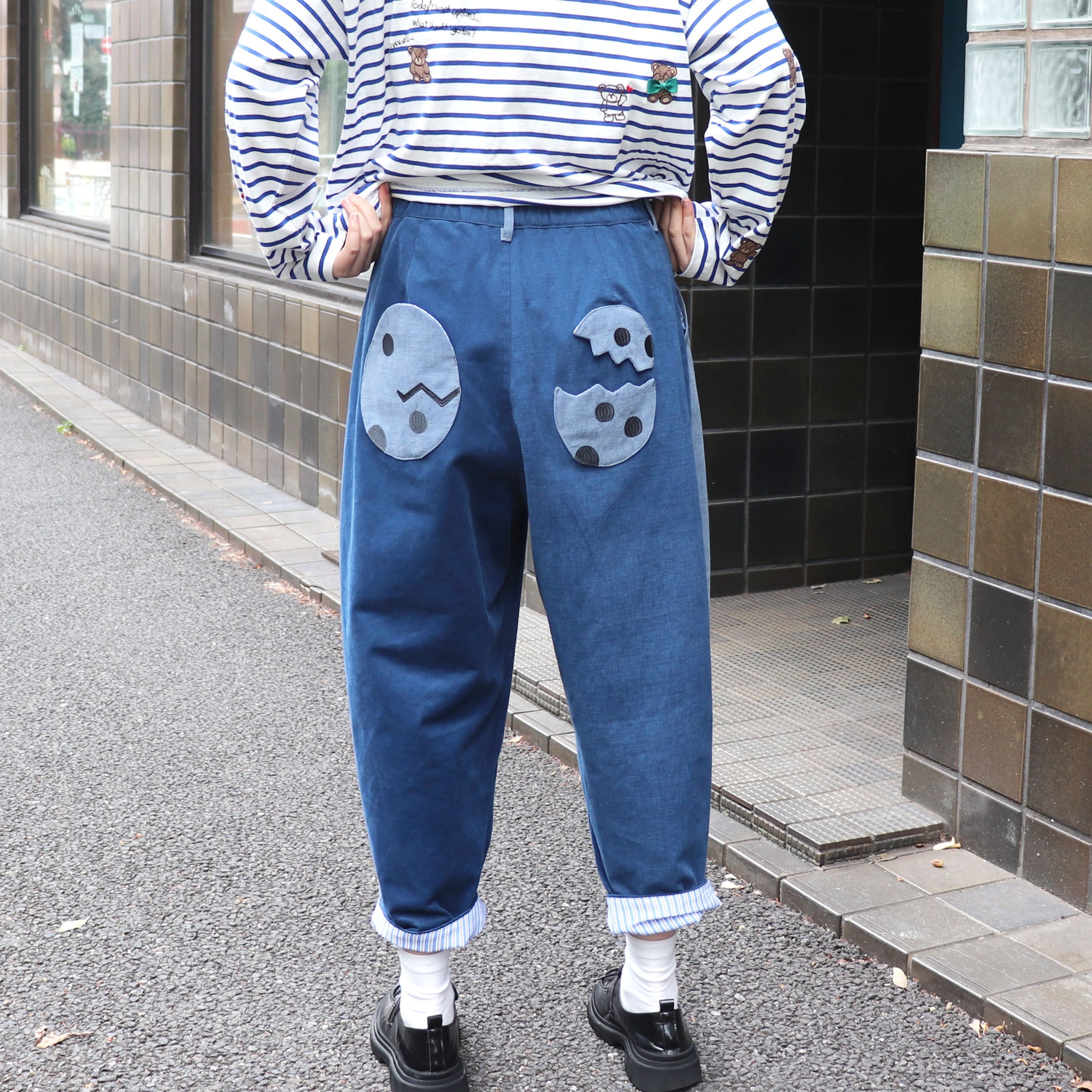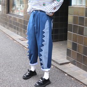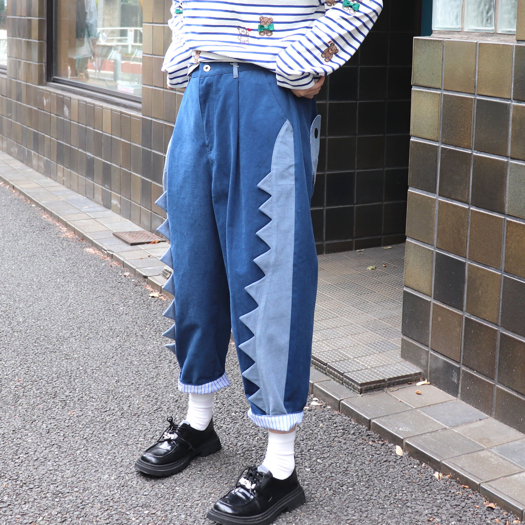 前回人気だった恐竜のシルエットに切り替え配色ツイルパンツです。