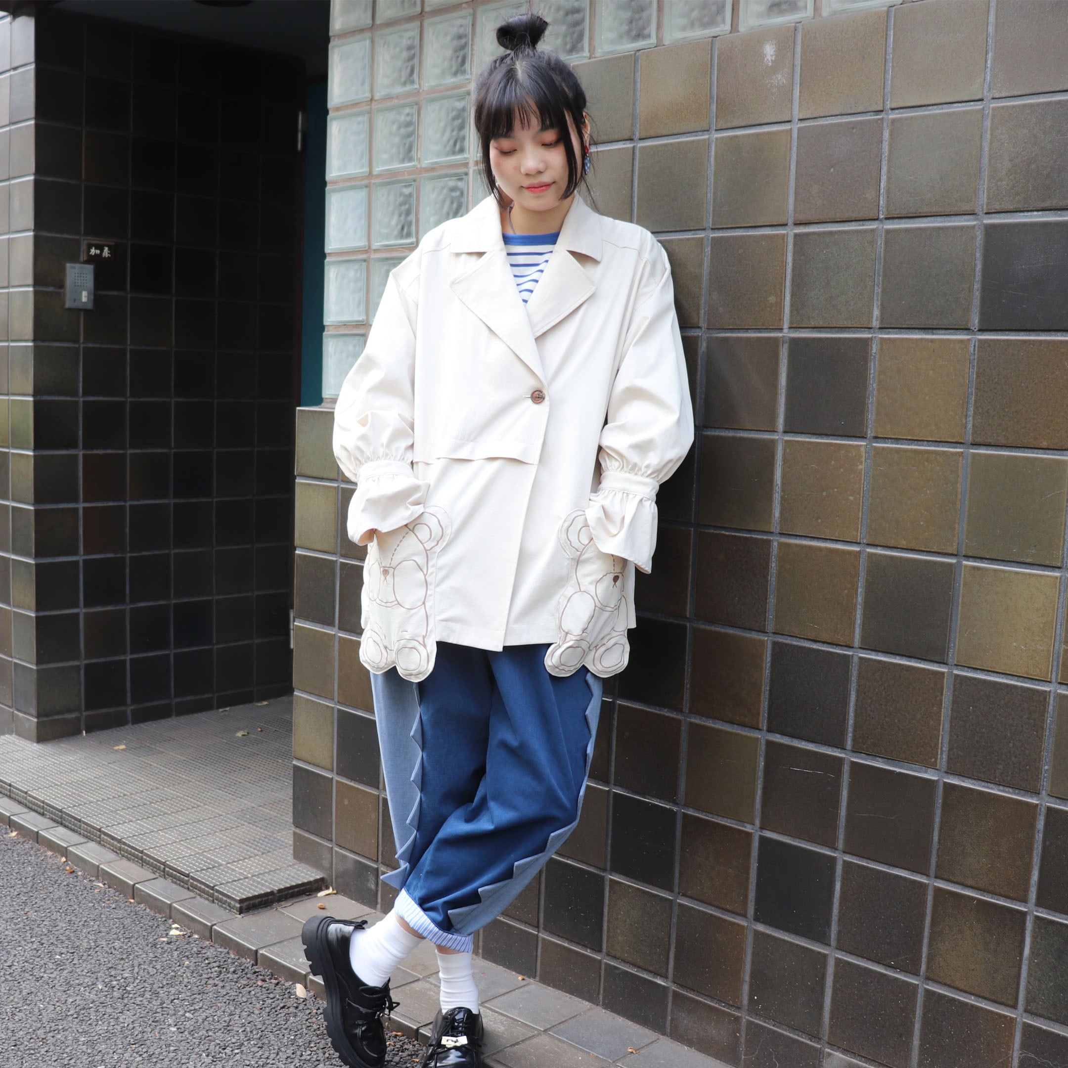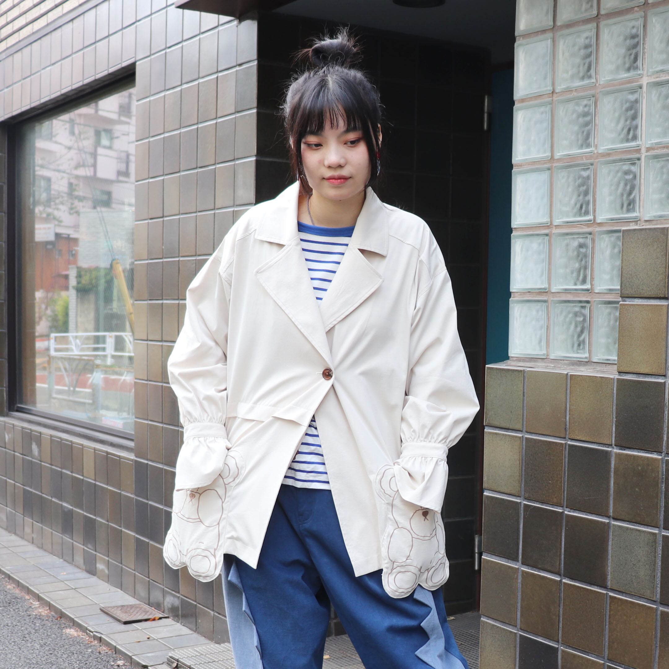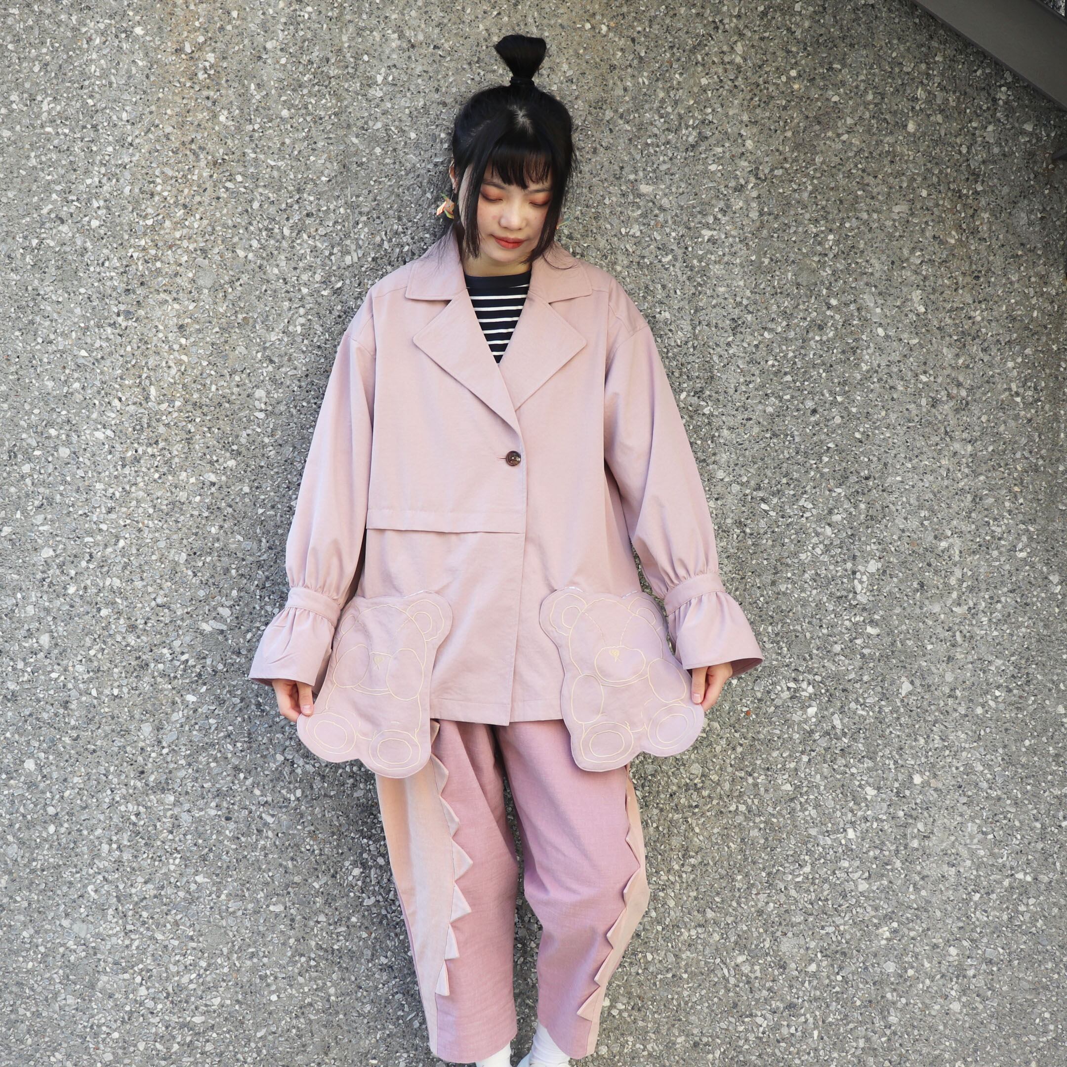 くまのポケットが可愛いオーバーサイズのジャケットです。