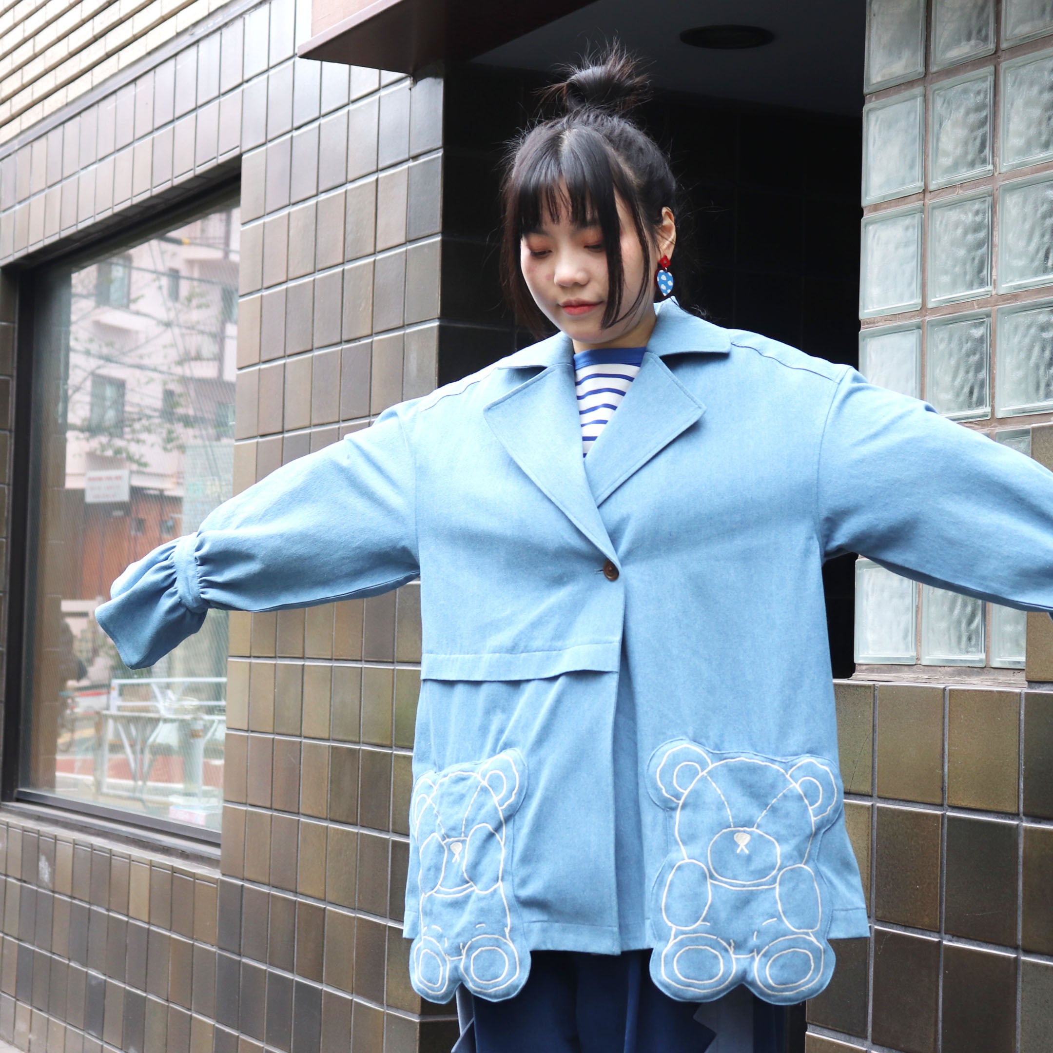 くまのポケットが可愛いオーバーサイズのデニムジャケットです。